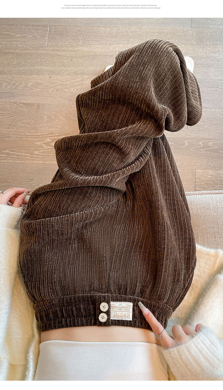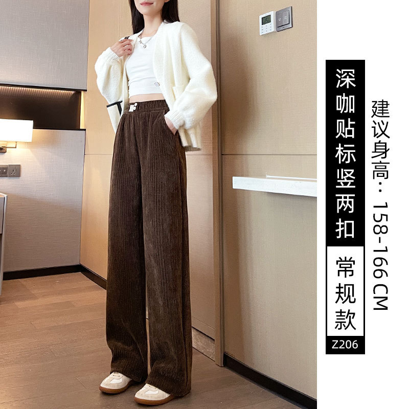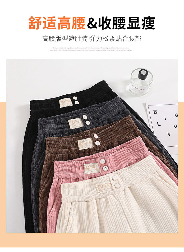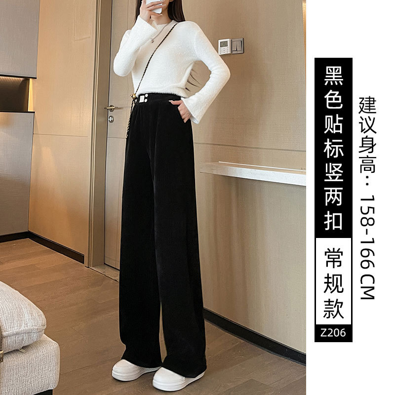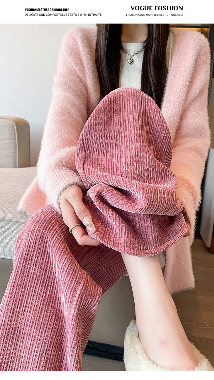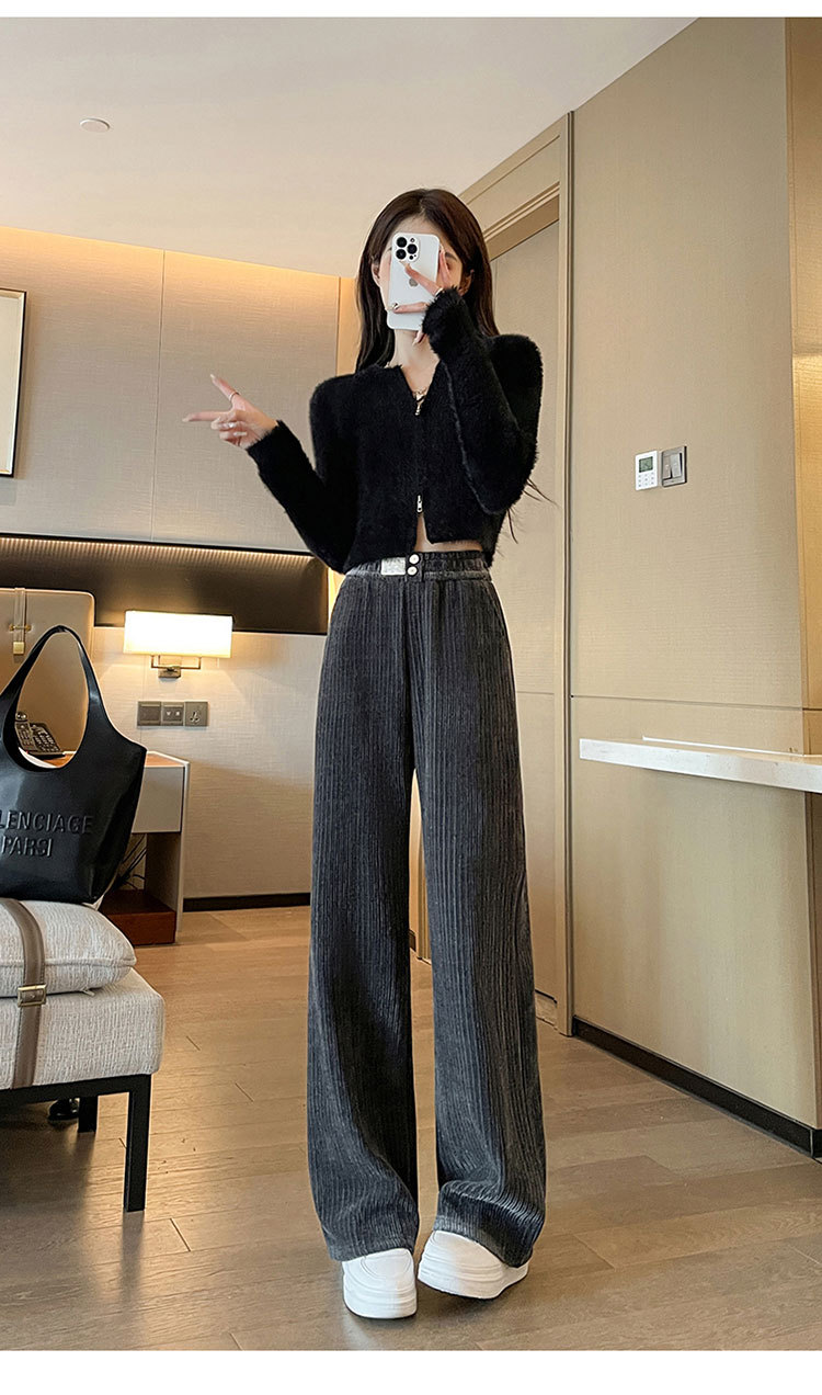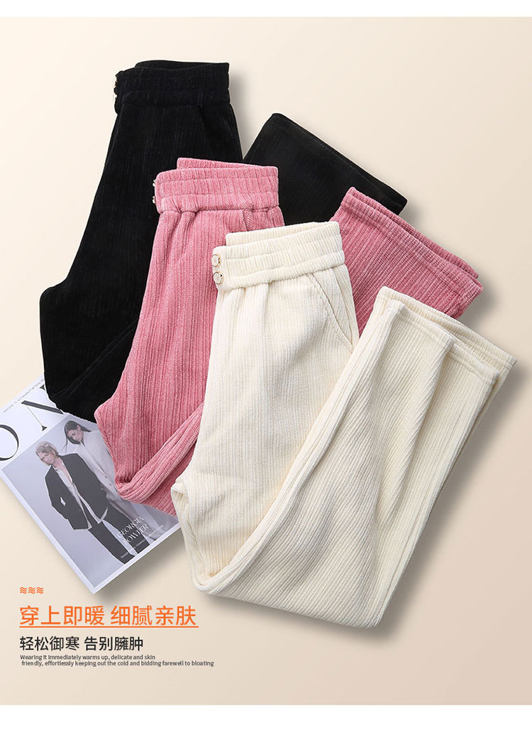 米白色雪尼尔阔腿裤子女春秋冬季2024新款直筒针织灯芯绒休闲裤