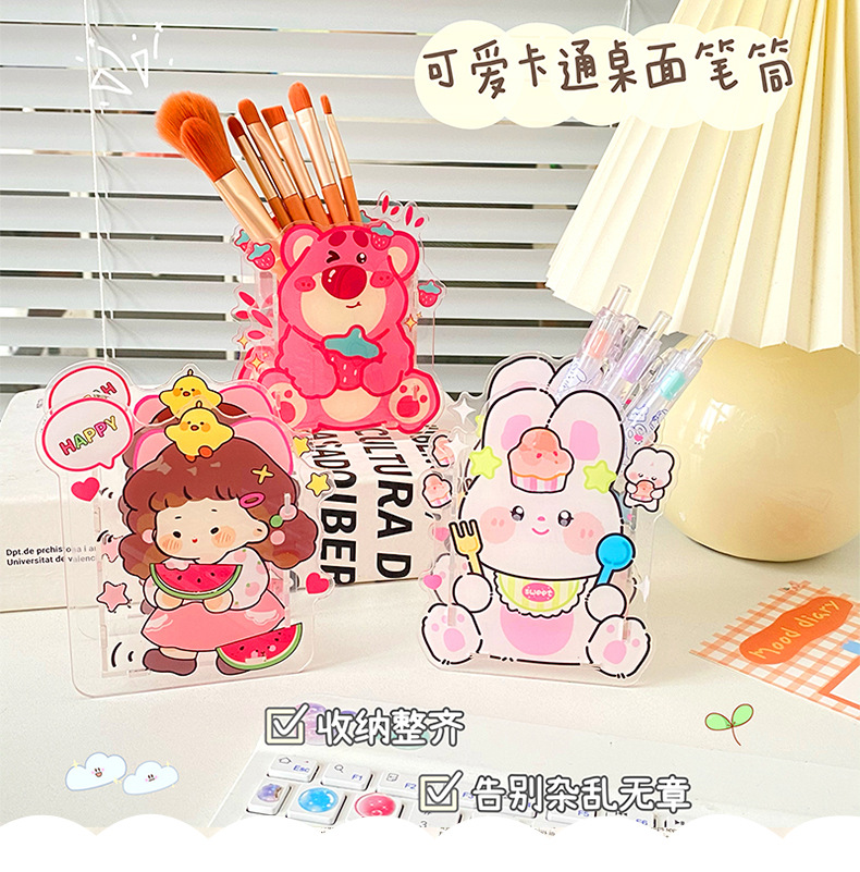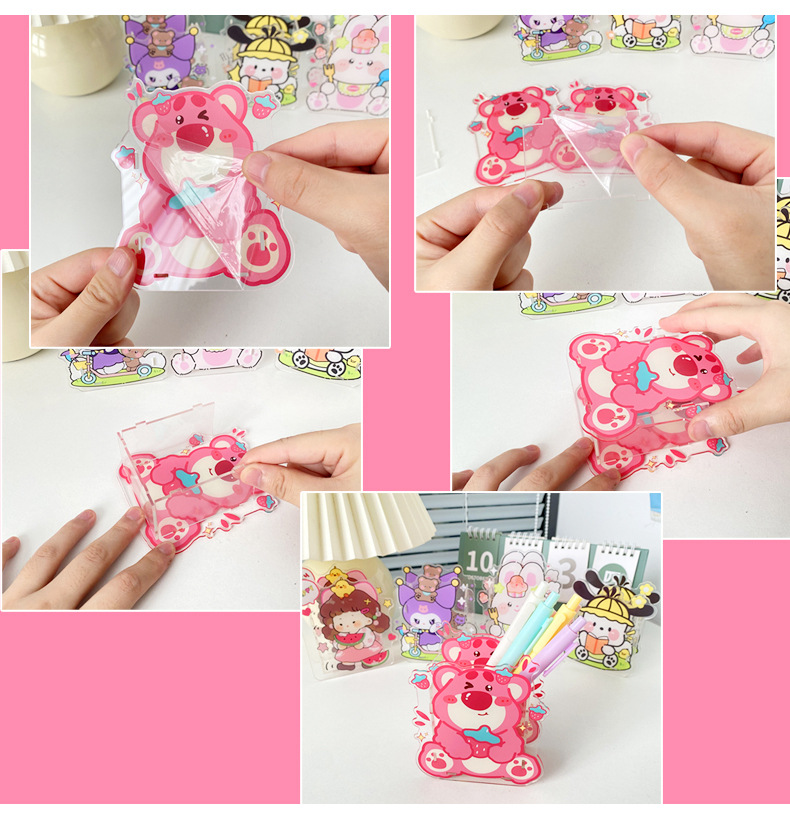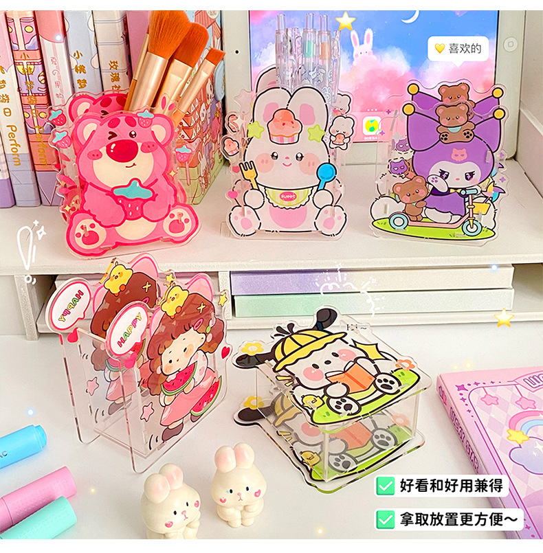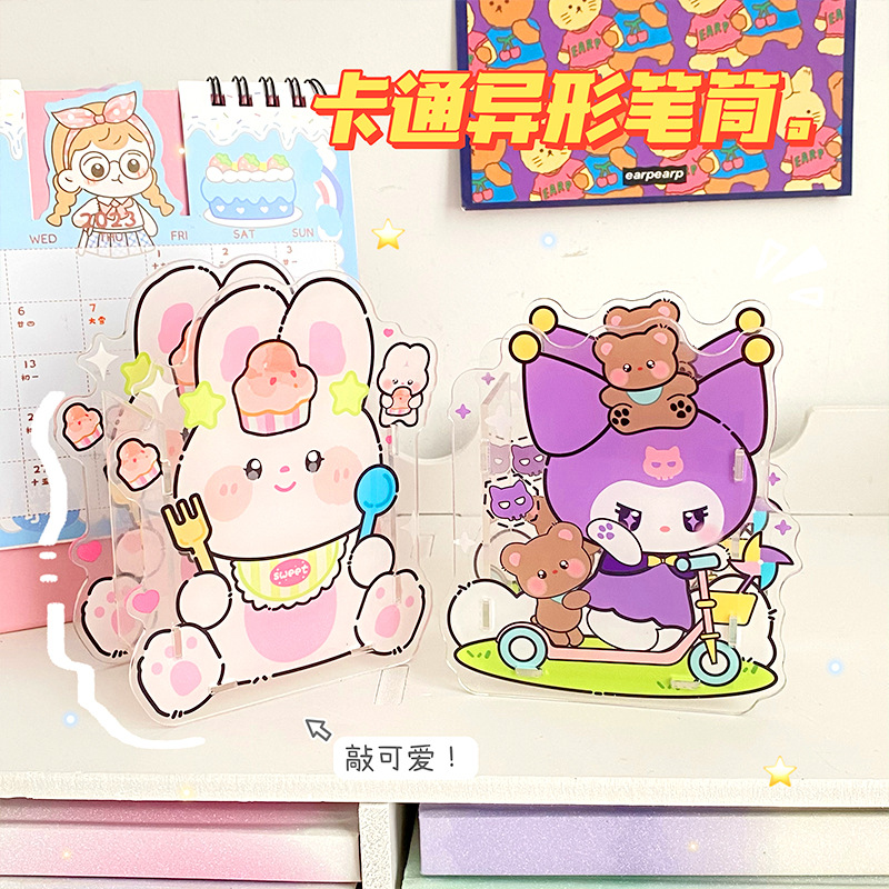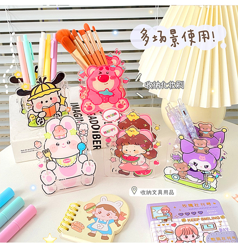 高颜值自贴贴纸diy笔筒异形亚克力 卡通桌面收纳可爱图案笔筒批发