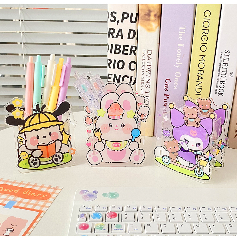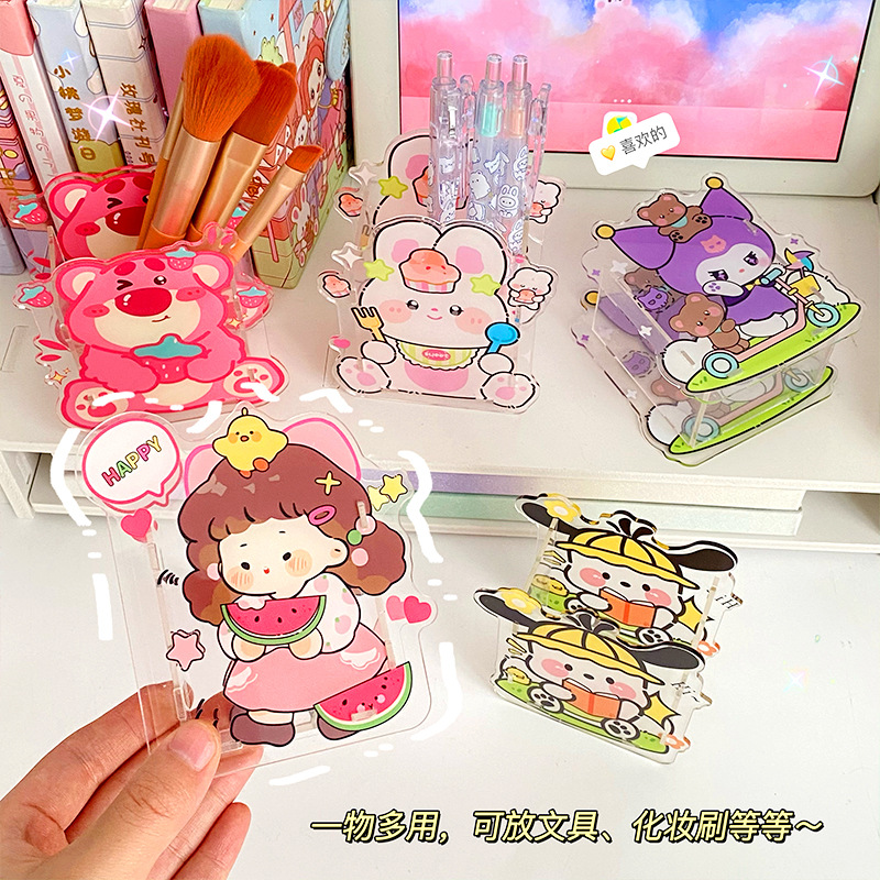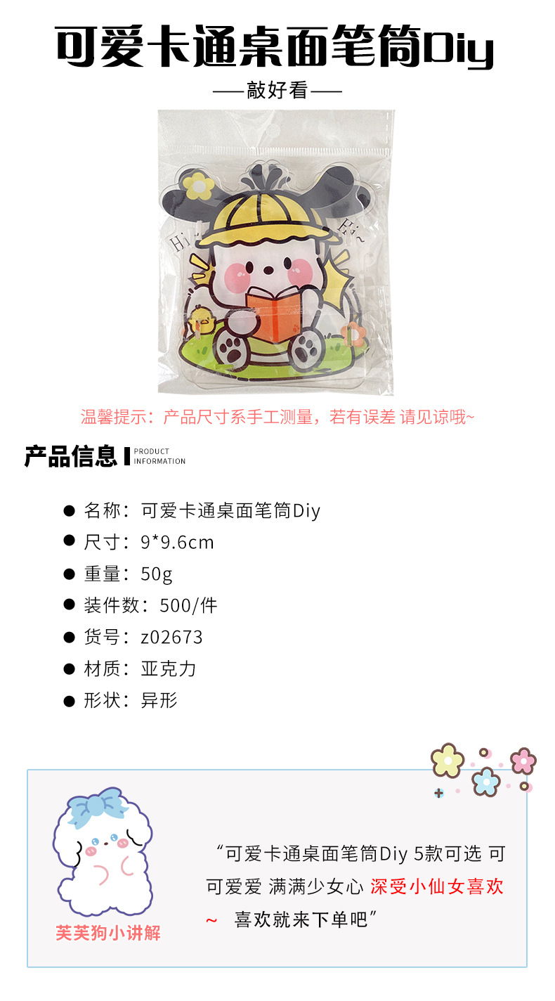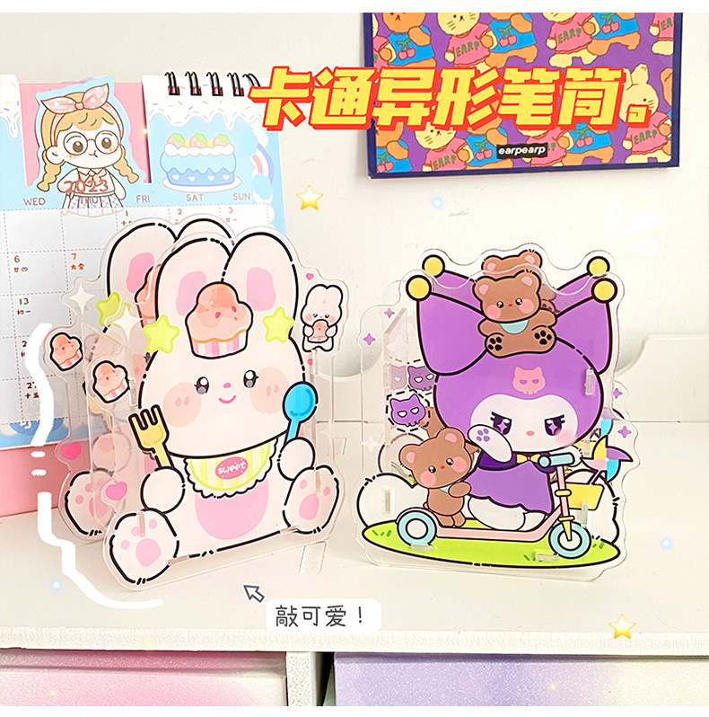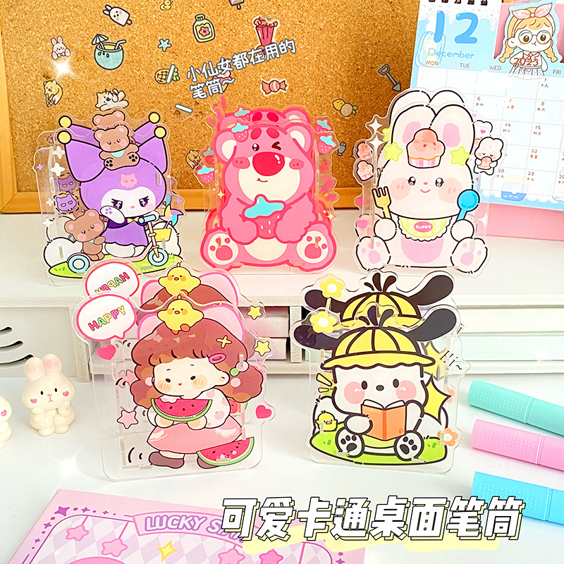 高颜值自贴贴纸diy笔筒异形亚克力 卡通桌面收纳可爱图案笔筒批发