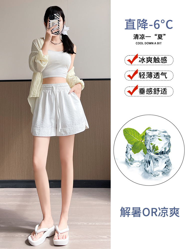 开叉运动山本短裤女夏季休闲2024新款高腰中裤宽松冰丝阔腿五分裤