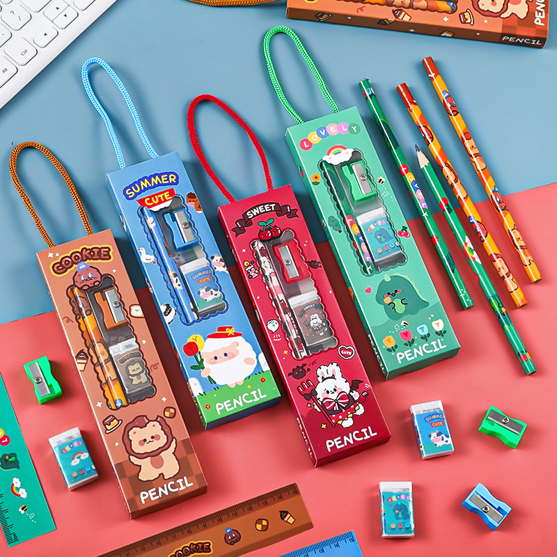 卡通盒装文具五件套小学生五合一铅笔套装儿童学习用品小礼品批发