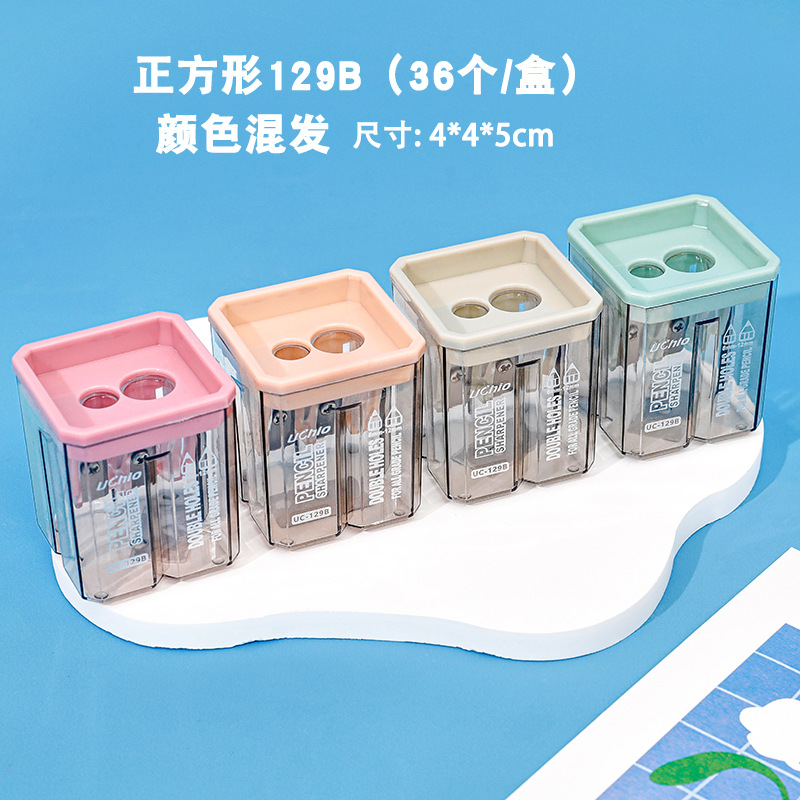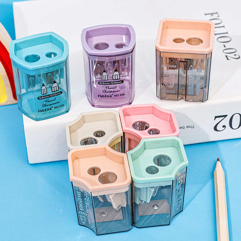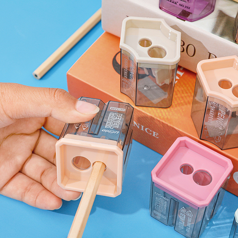 儿童简约双孔卷笔刀创意便携铅笔刀手动削笔刀学生文具铅笔转笔刀