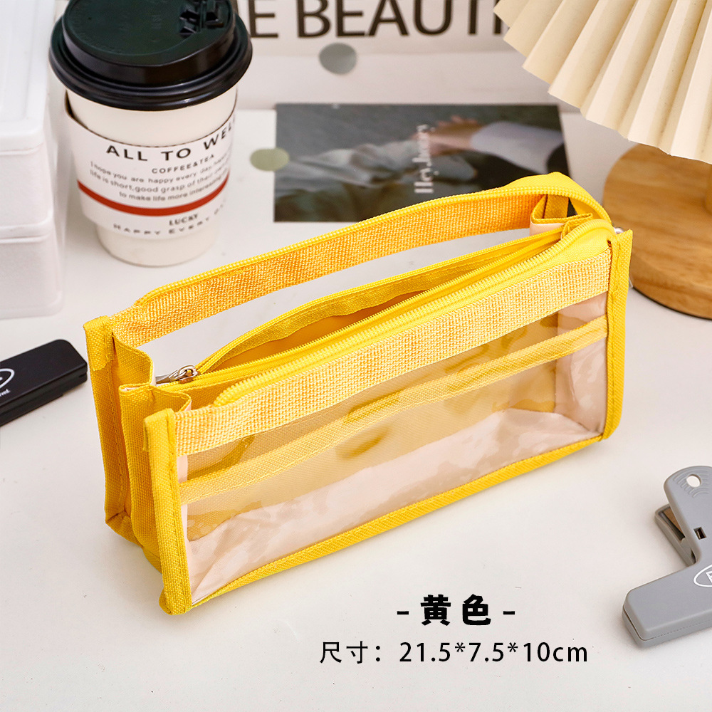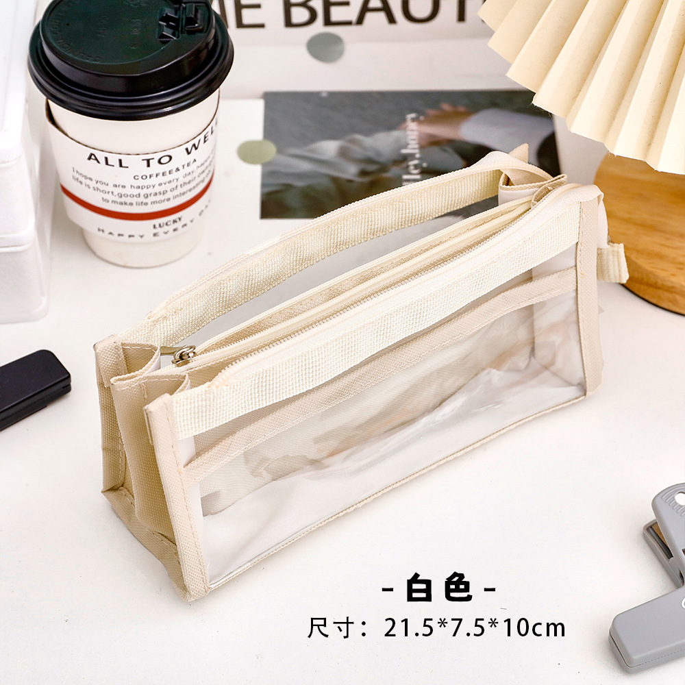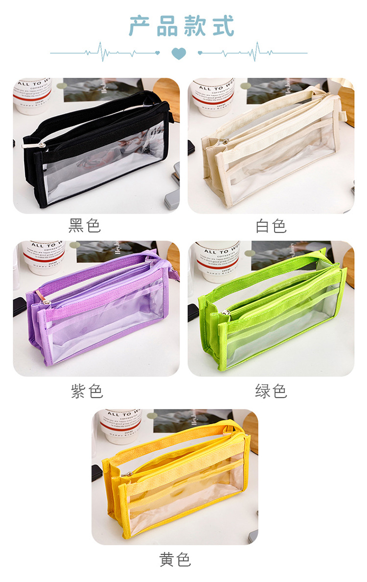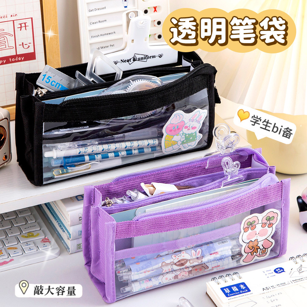 创意简约大容量透明笔袋简约纯色学生多功能便携收纳文具袋铅笔袋