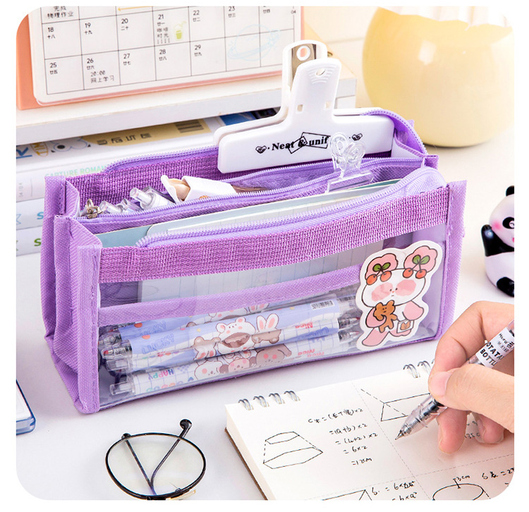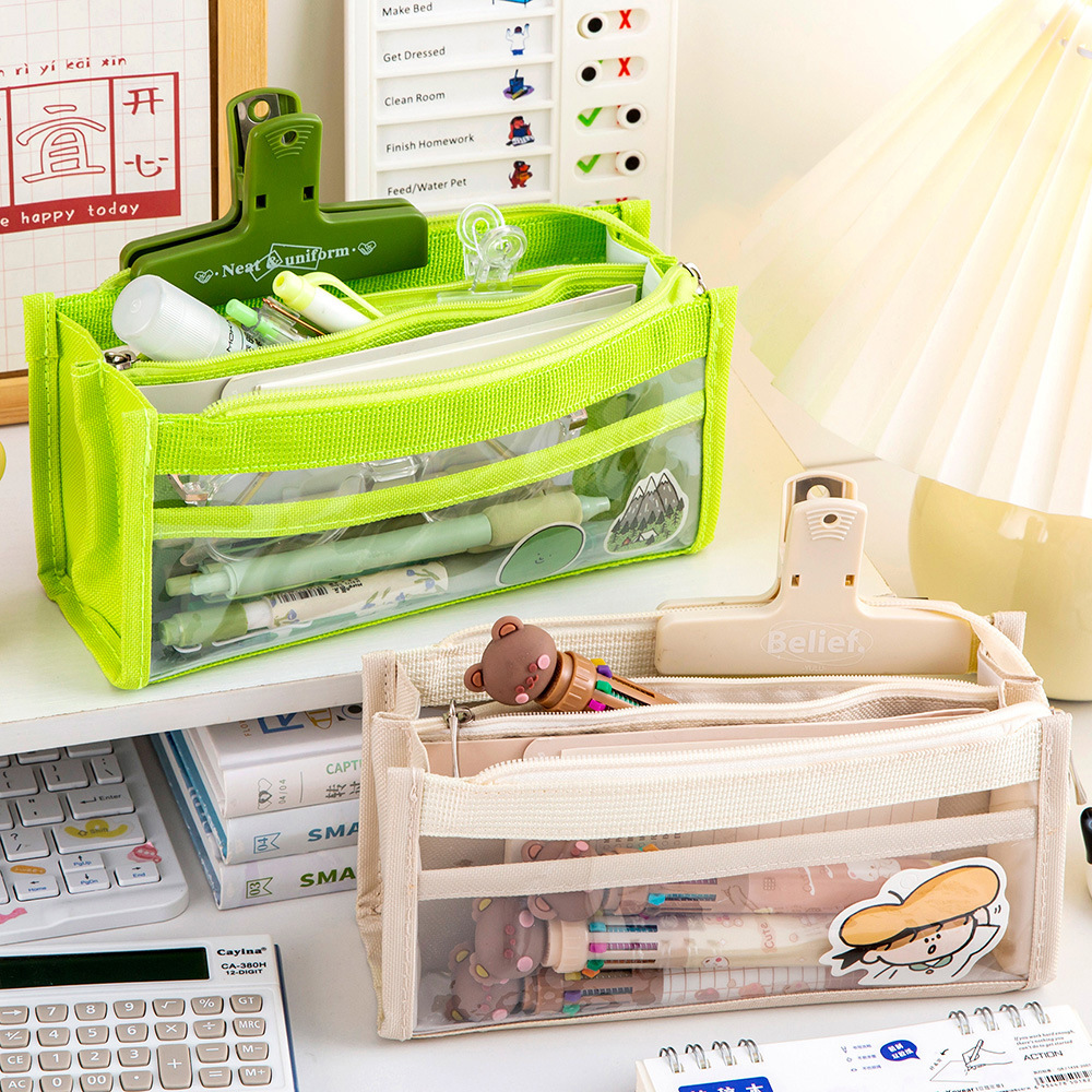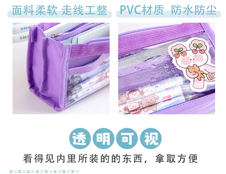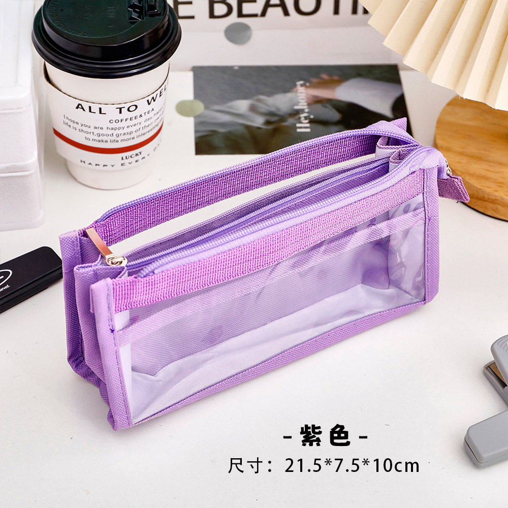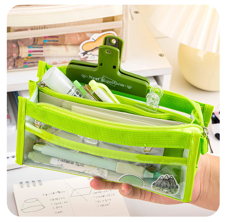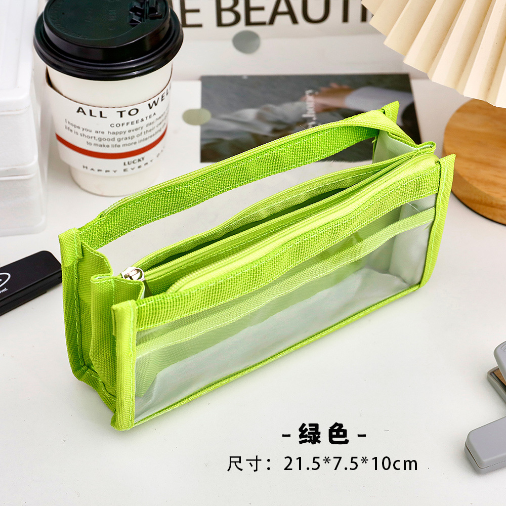 创意简约大容量透明笔袋简约纯色学生多功能便携收纳文具袋铅笔袋