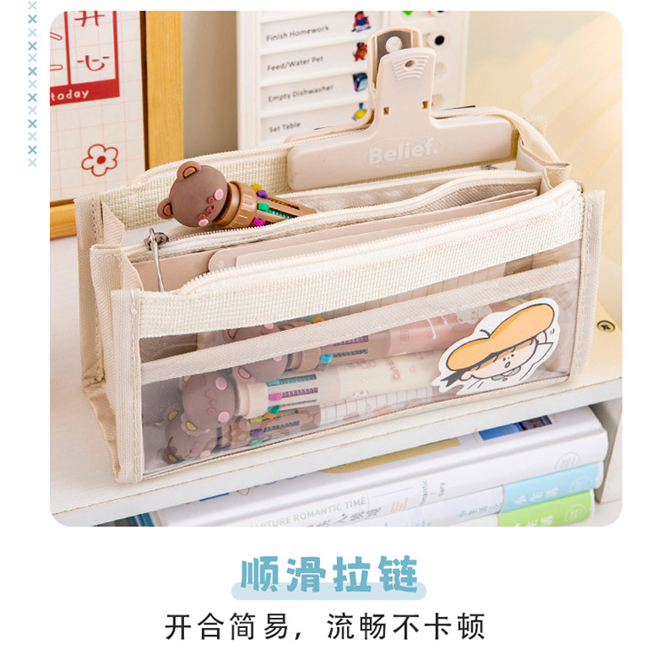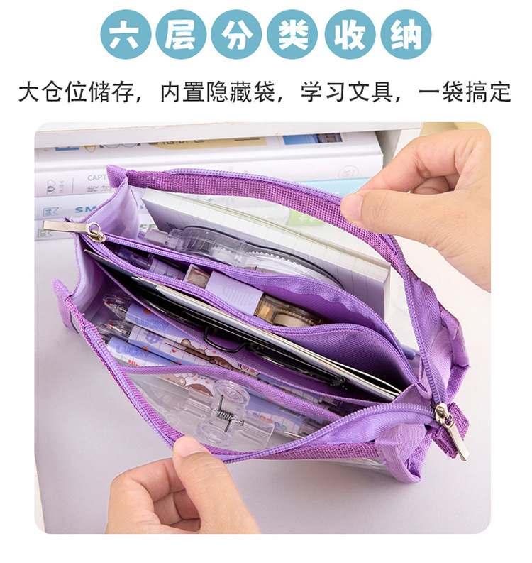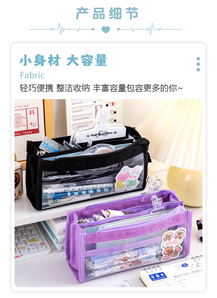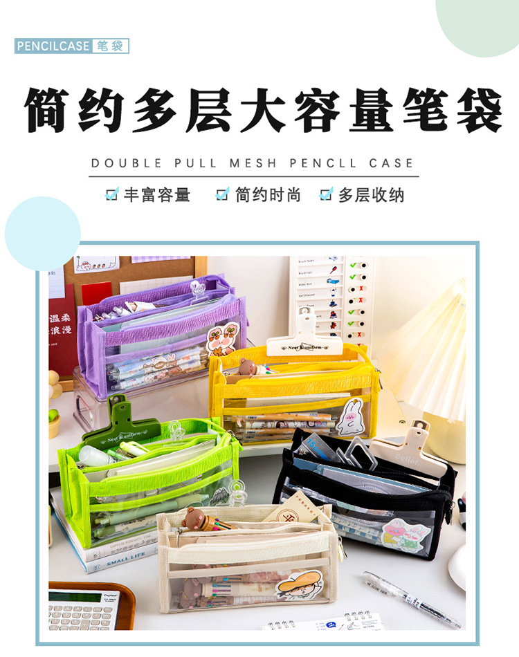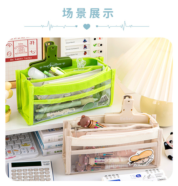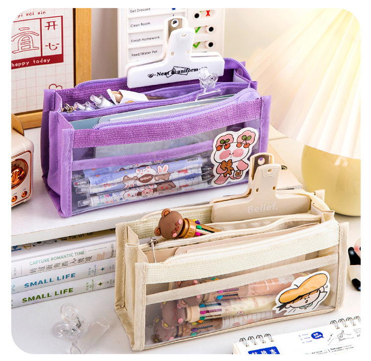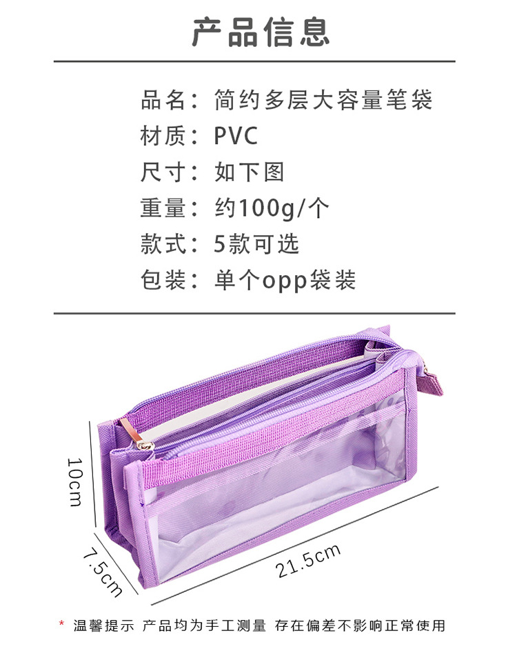创意简约大容量透明笔袋简约纯色学生多功能便携收纳文具袋铅笔袋