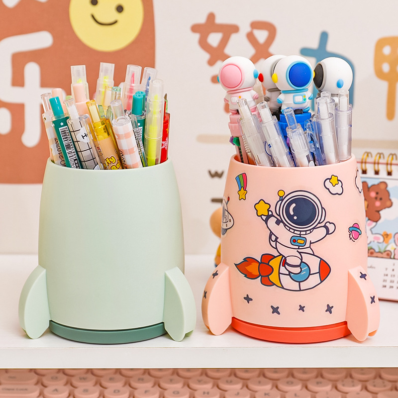 创意小火箭笔筒 学生大容量简约收纳桶 多功能办公桌面收纳盒摆件
