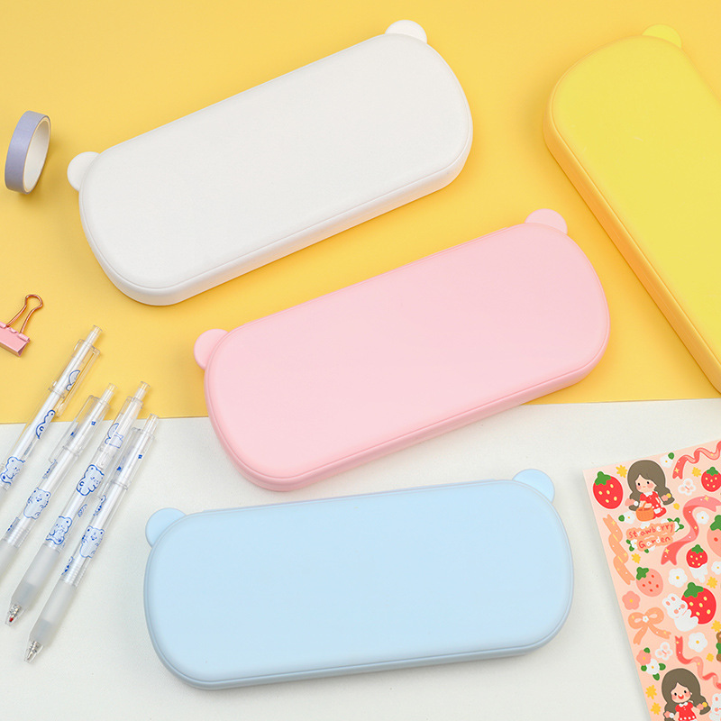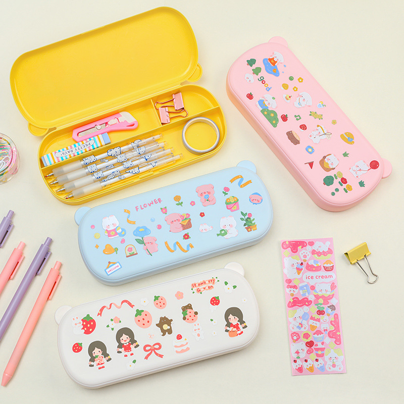 可爱熊熊分格文具盒 学生简约无印风马卡龙铅笔盒 多功能收纳盒