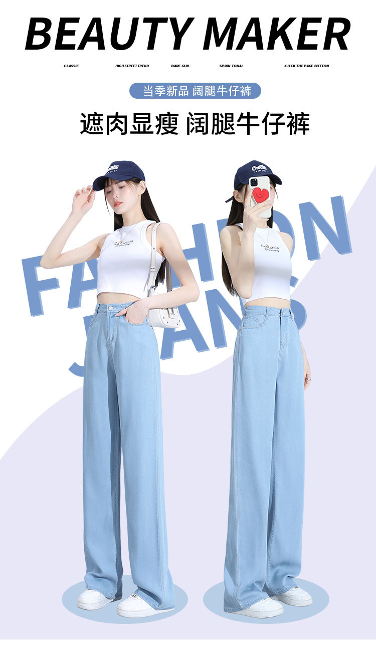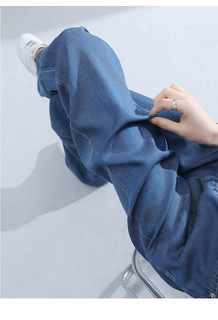 天丝牛仔裤女2024年新款夏季薄款宽松直筒高腰垂感休闲窄版阔腿裤