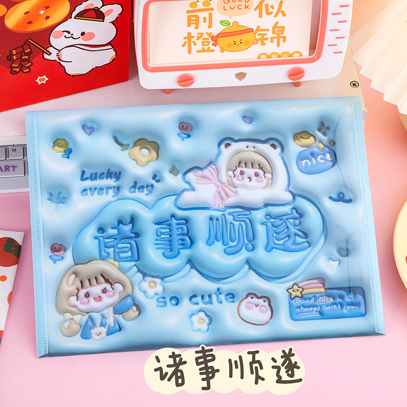 a4励志文字文件袋透明国风按扣式PP防水学生文具收纳袋试卷资料袋