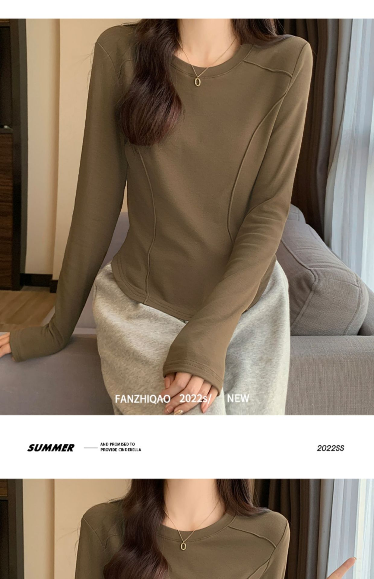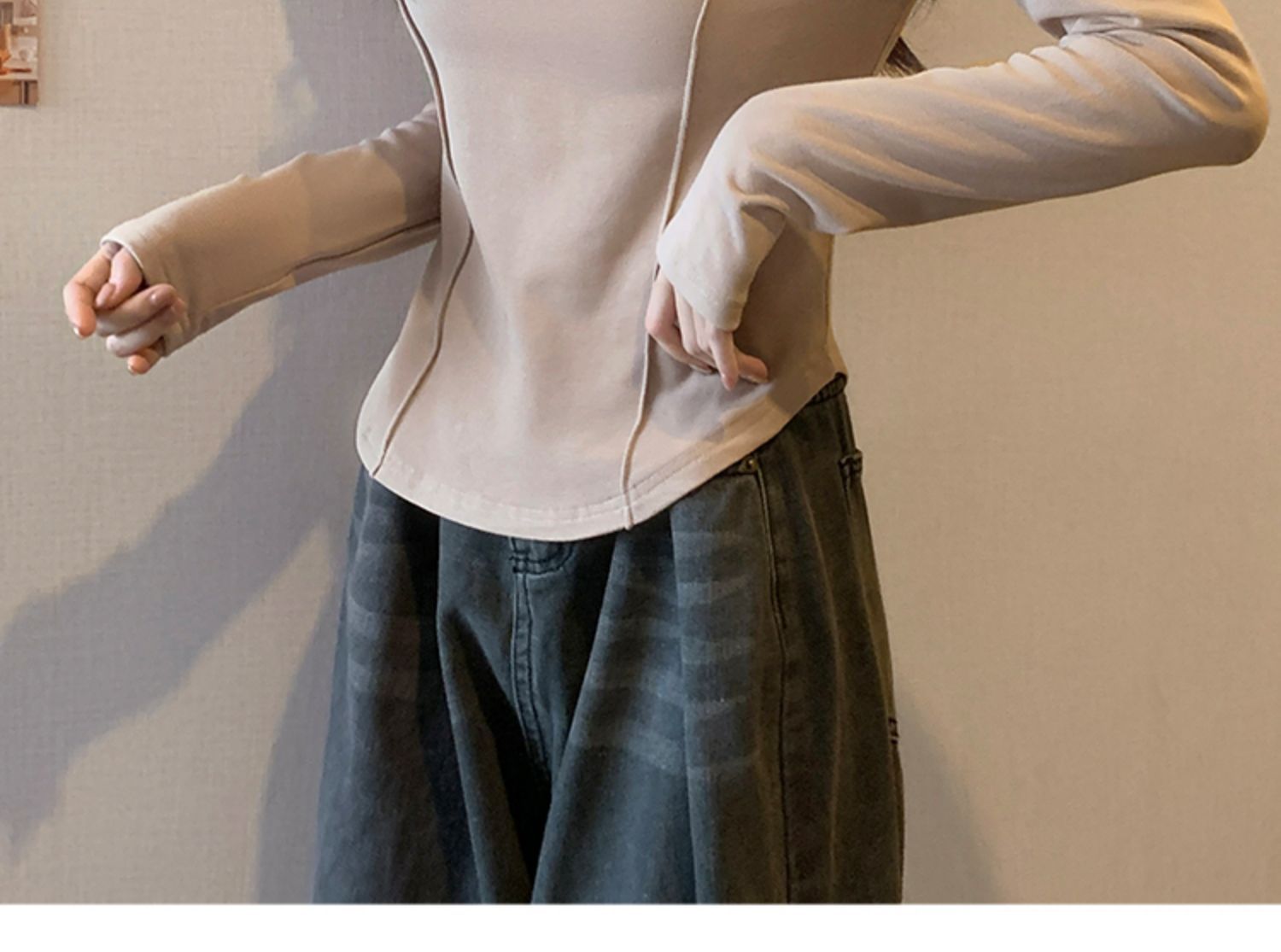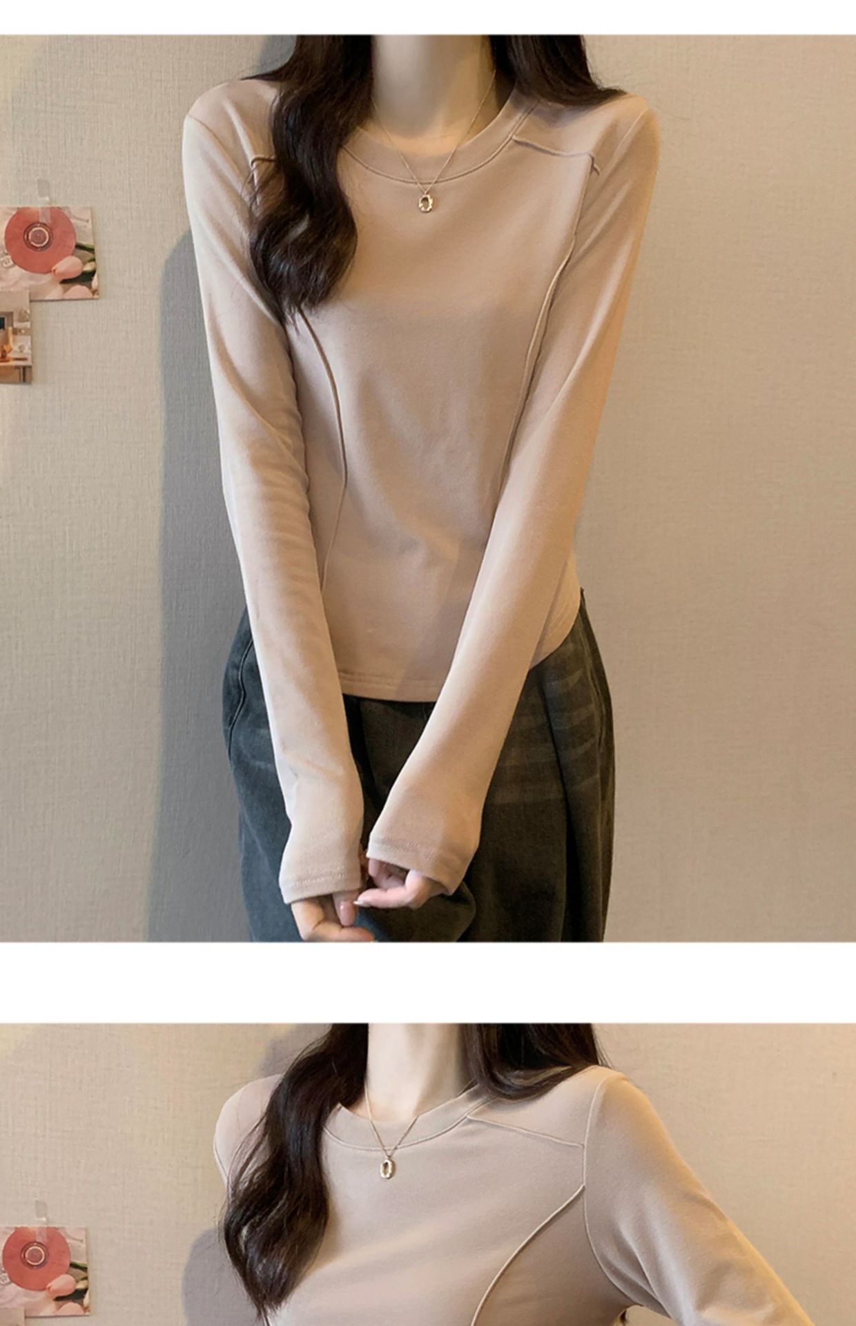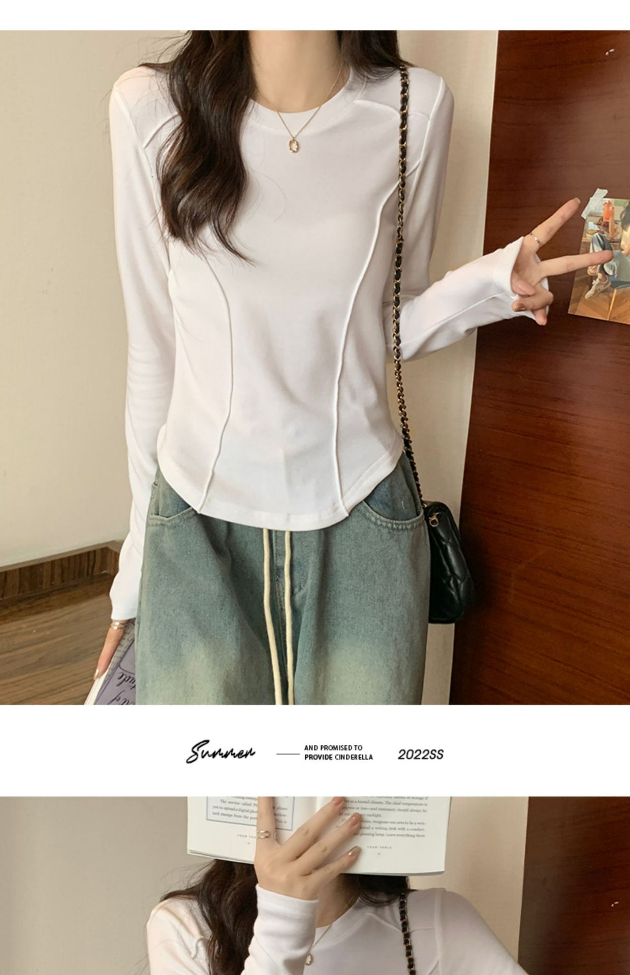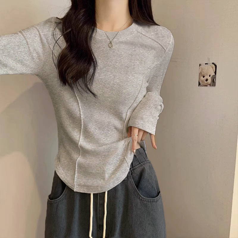 白色长袖打底衫女秋冬内搭短款鱼骨上衣设计感修身加绒磨毛T恤
