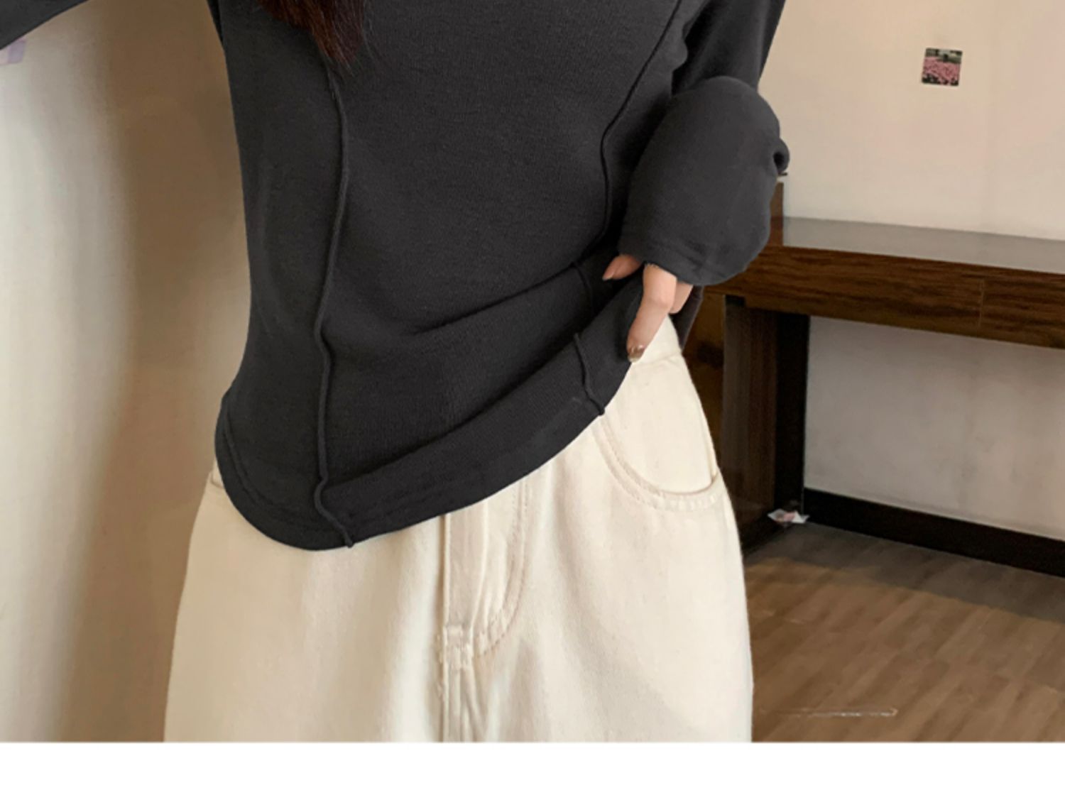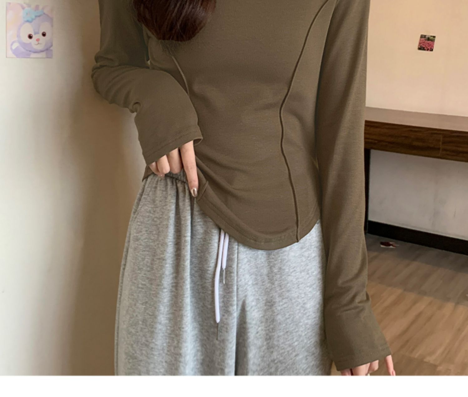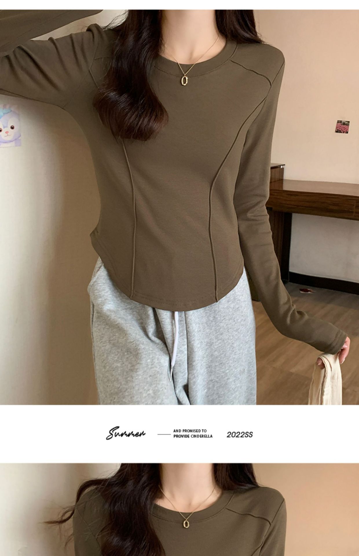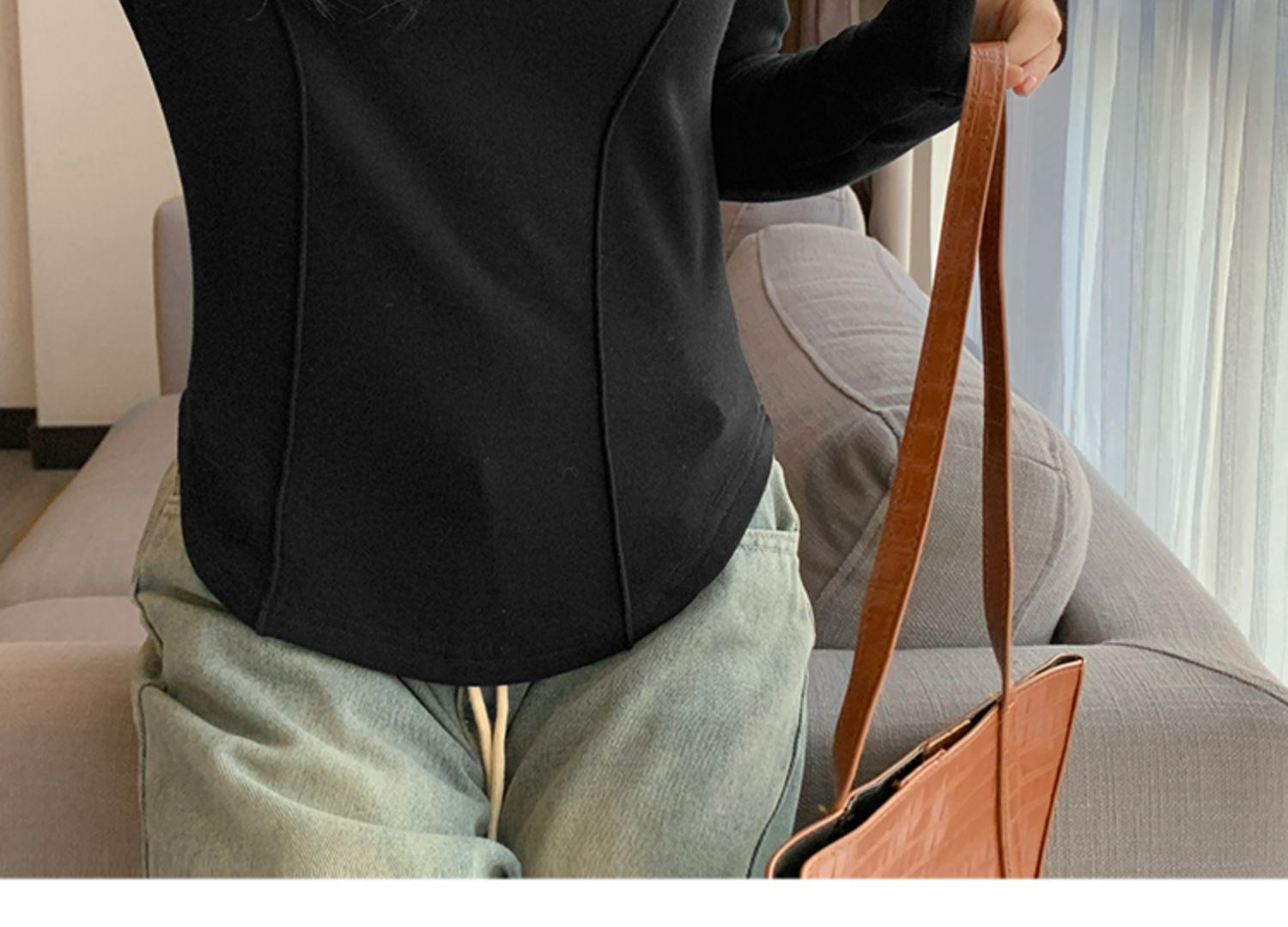 白色长袖打底衫女秋冬内搭短款鱼骨上衣设计感修身加绒磨毛T恤