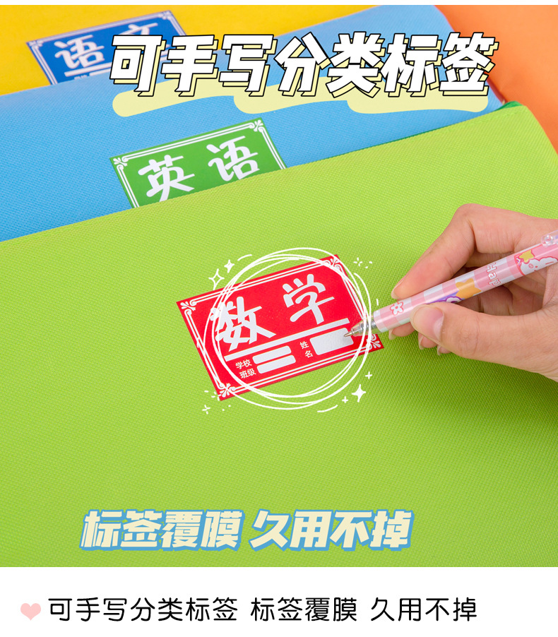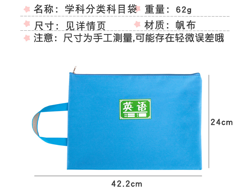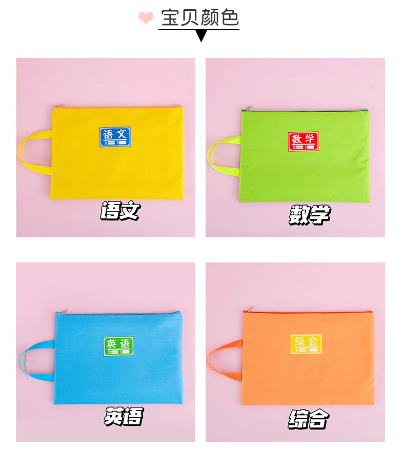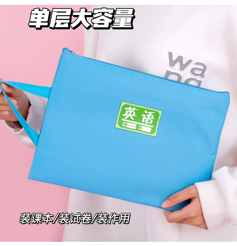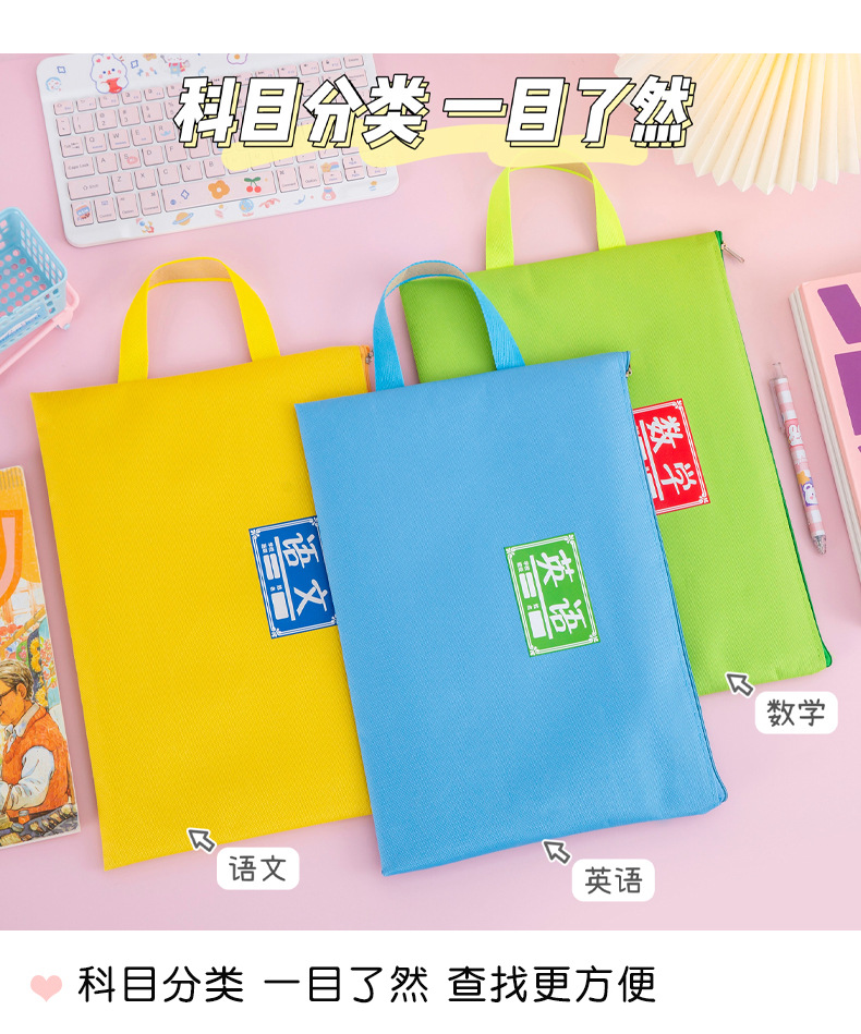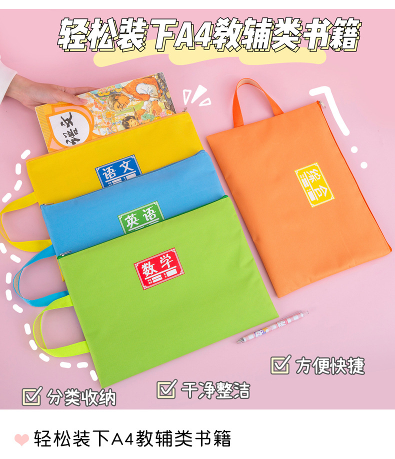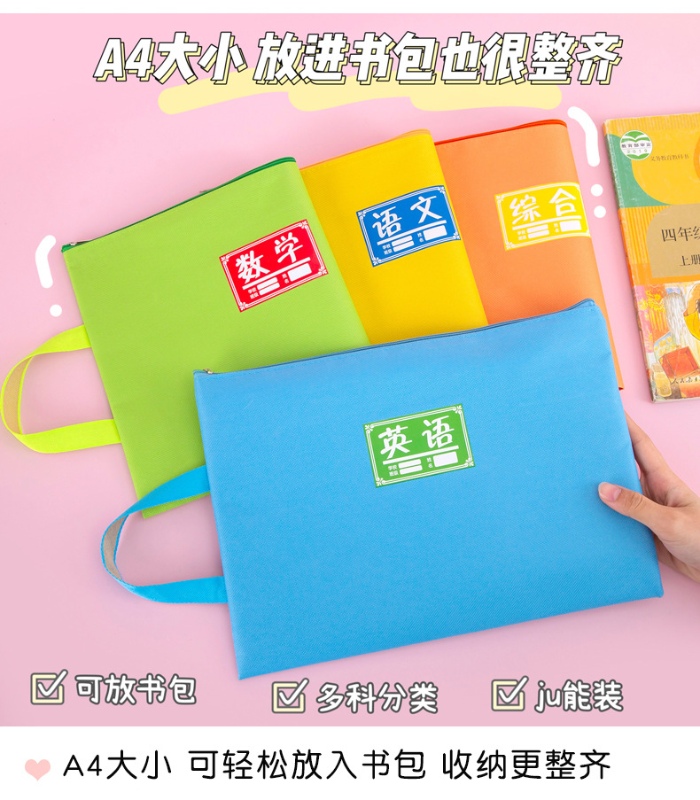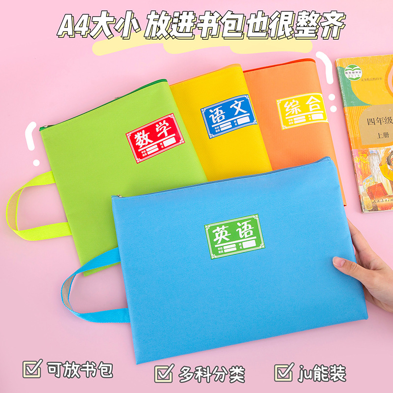 学科科目分类文件袋 A4手提式帆布试卷作业收纳袋学生书本拉链袋
