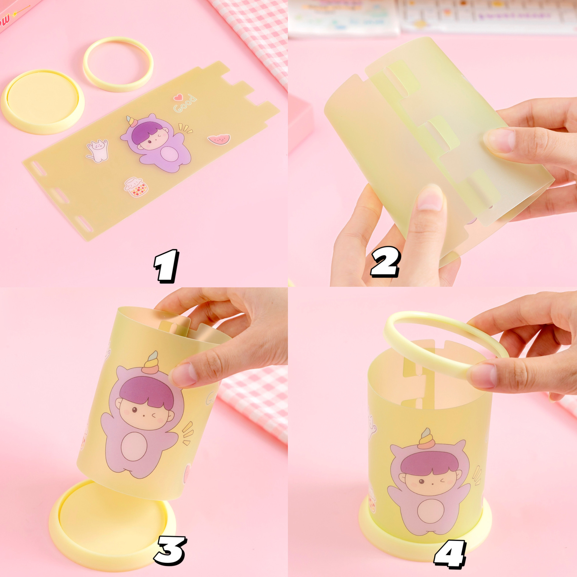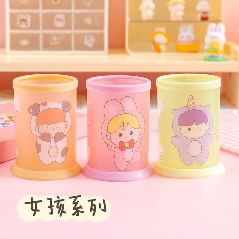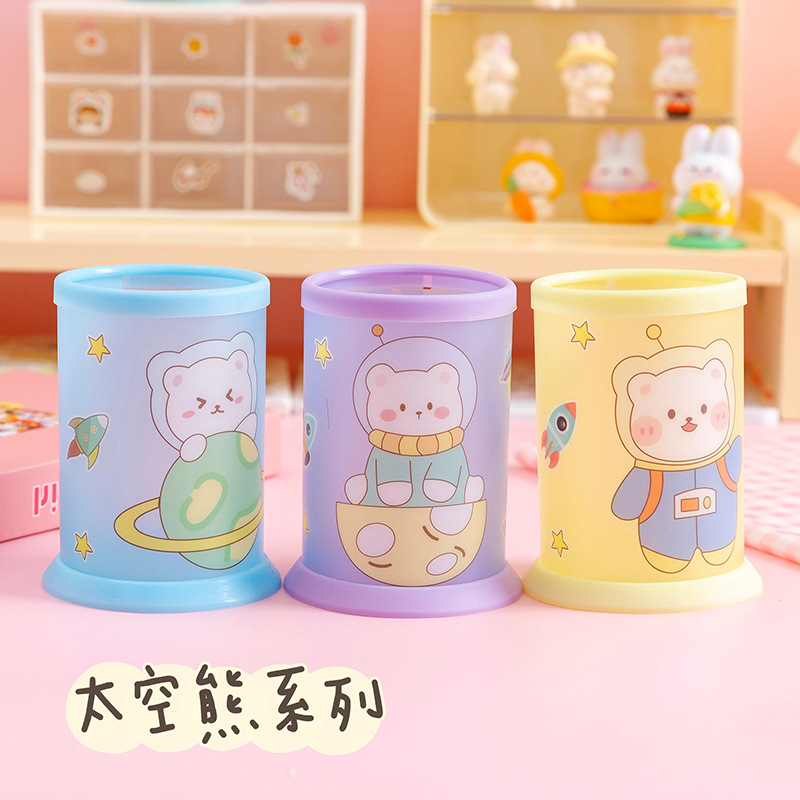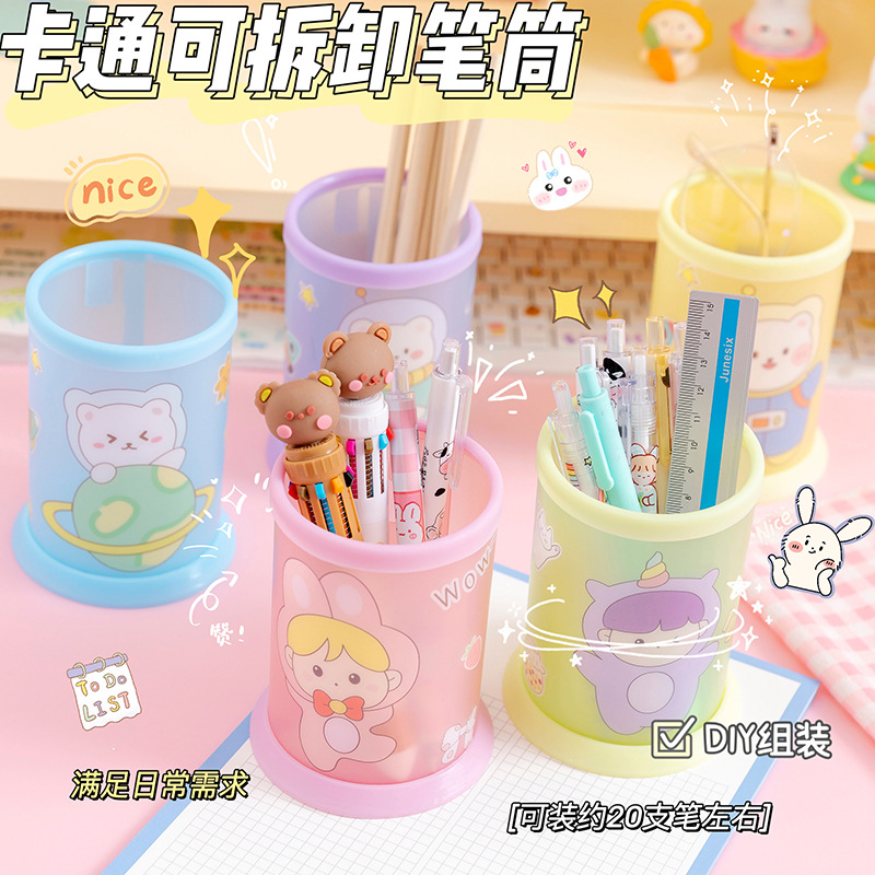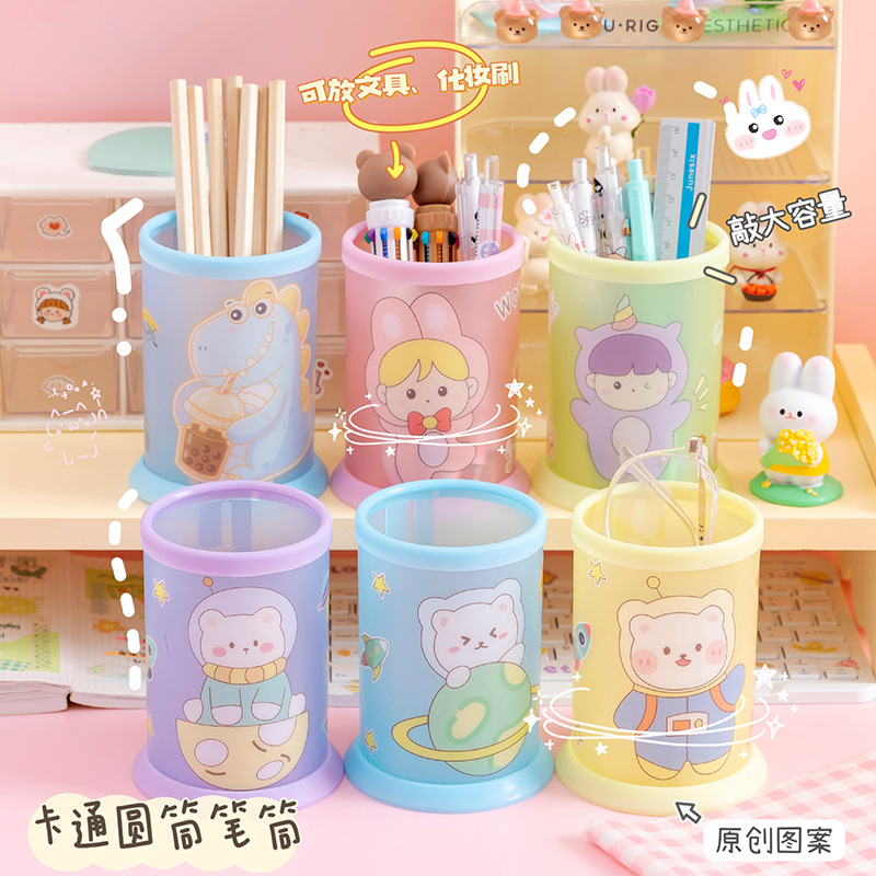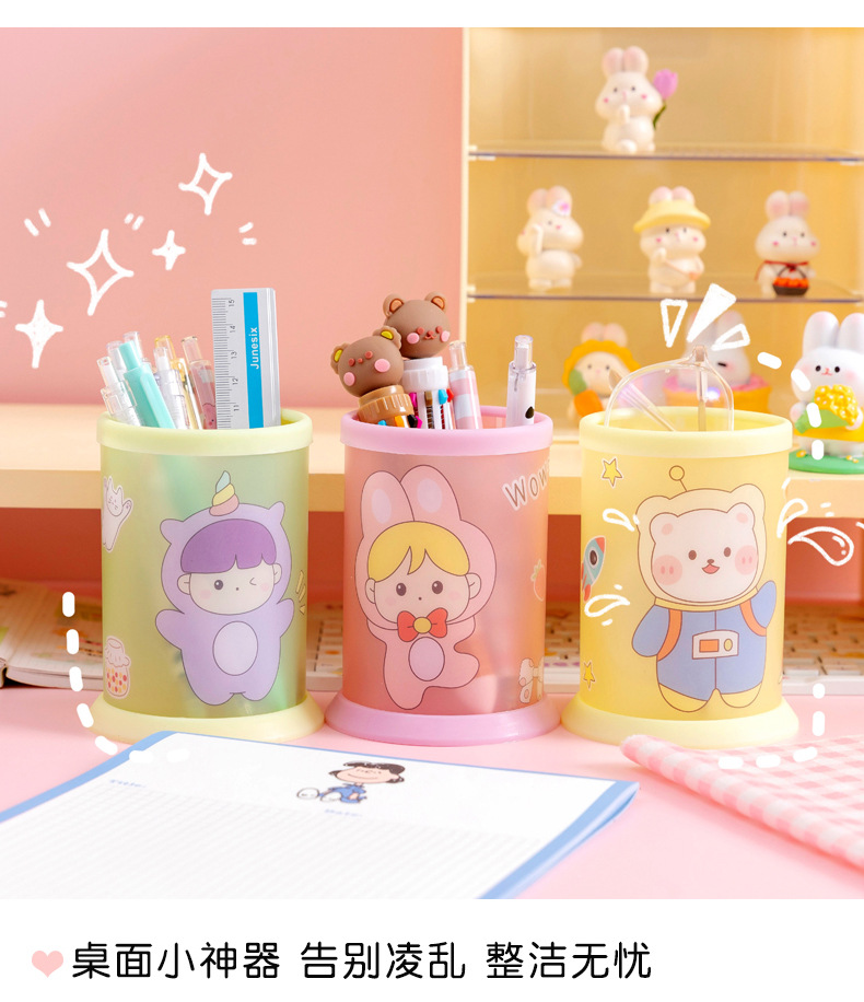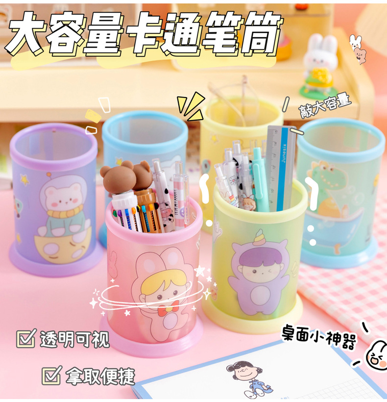 创意透明笔筒批发可爱卡通diy可折叠笔筒学生桌面文具收纳盒笔桶
