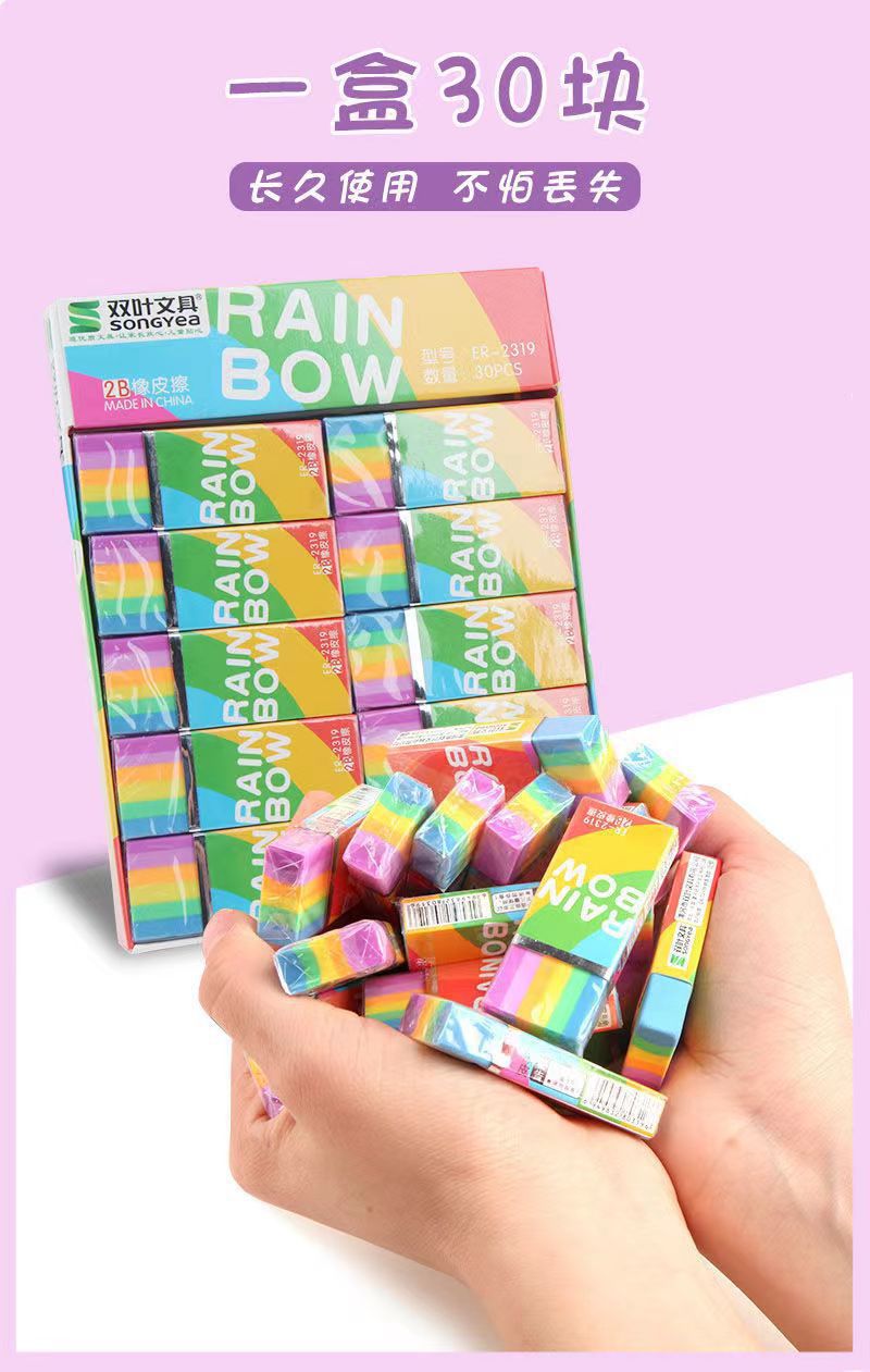 彩虹橡皮 小学生少屑高颜值立体彩虹橡皮擦学习用品考试专用批发