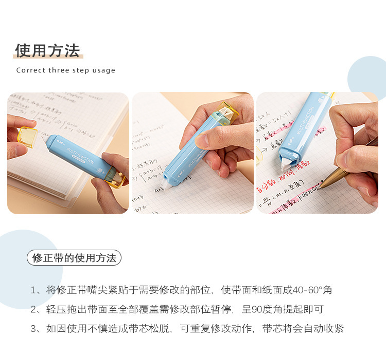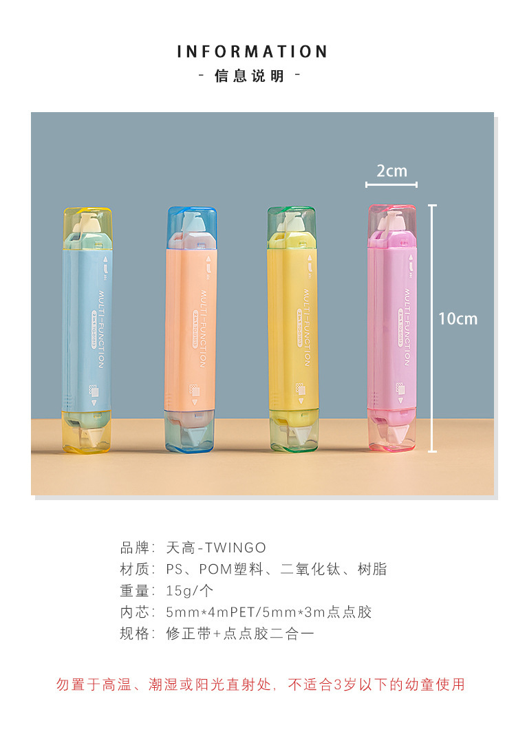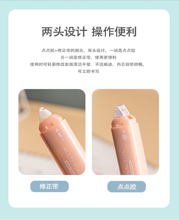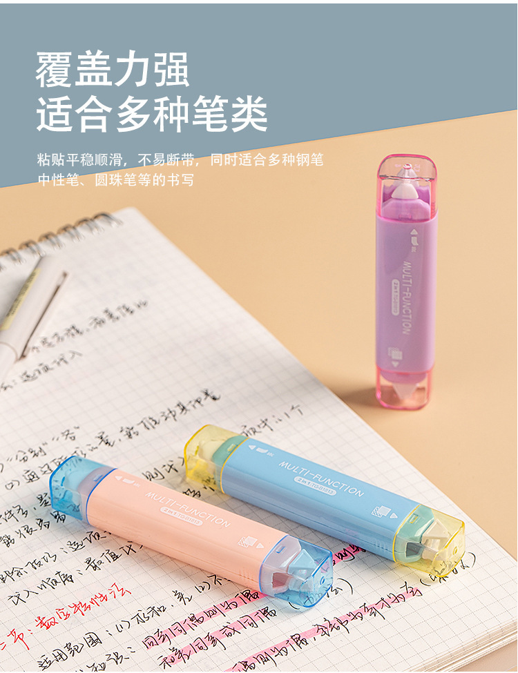 二合一双头修正带点点胶三角透明膜马卡龙ins学生改正带学生用品