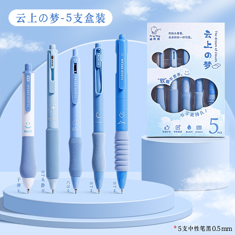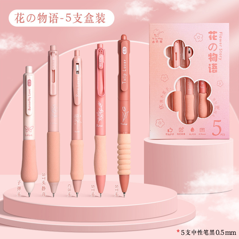 按动中性笔ins高颜值学生考试刷题笔创意ST头黑笔速干系列套装