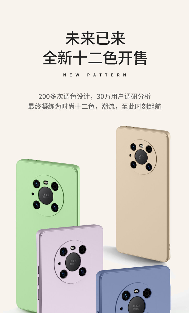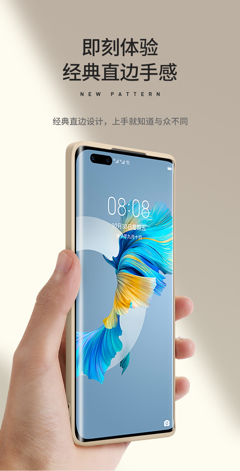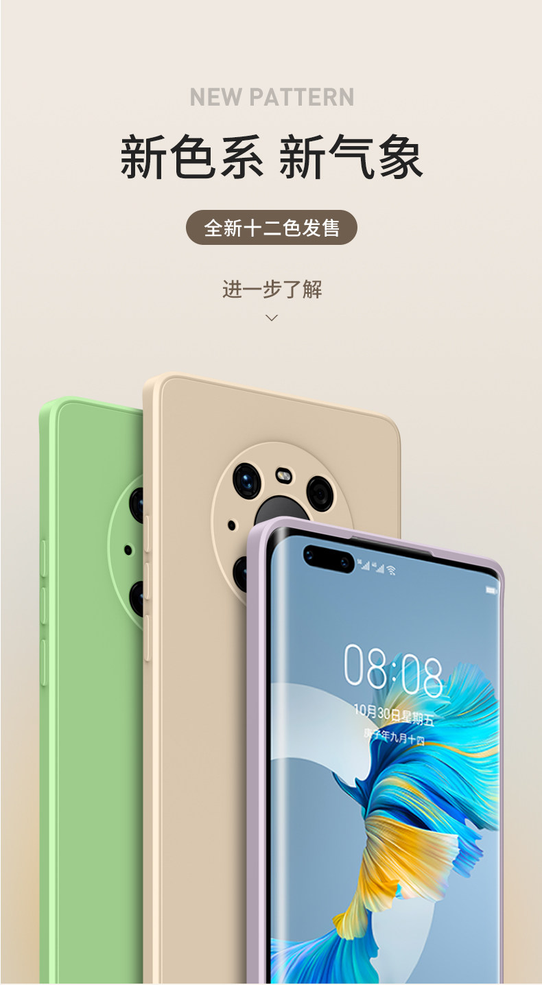 适用华为mate60手机壳 mate50直边40液态硅胶30pro全包防摔保护壳