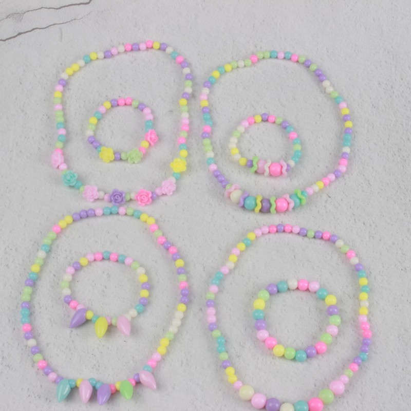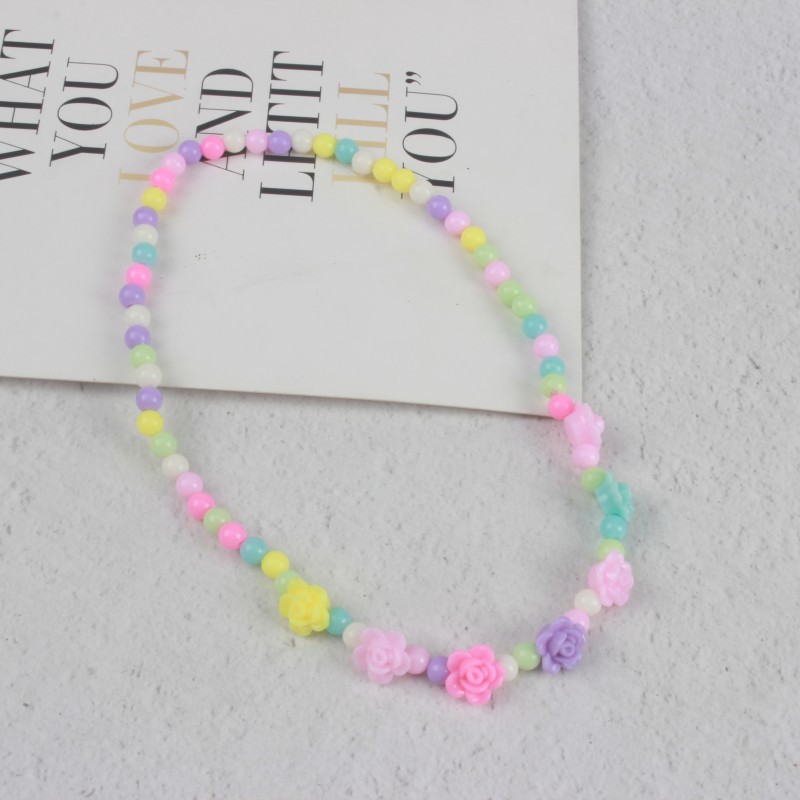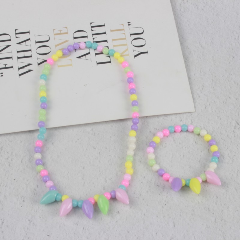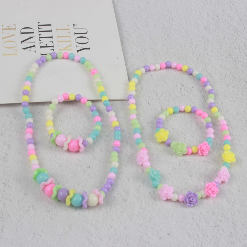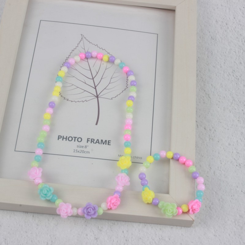 糖果色儿童项链手链彩色珠子颈链现货可爱公主亚克力花朵卡通套装