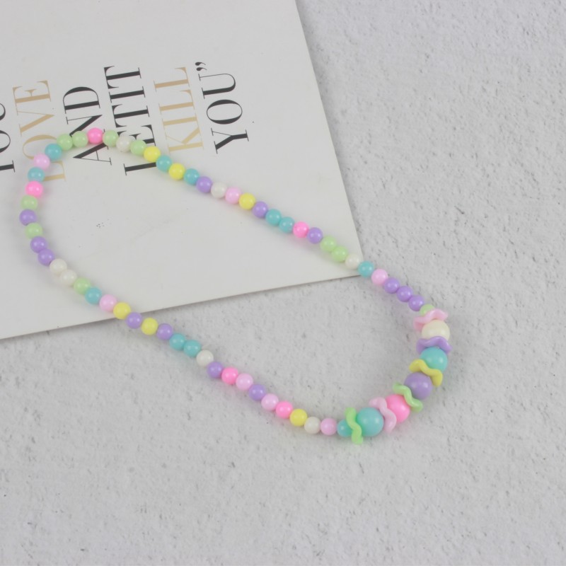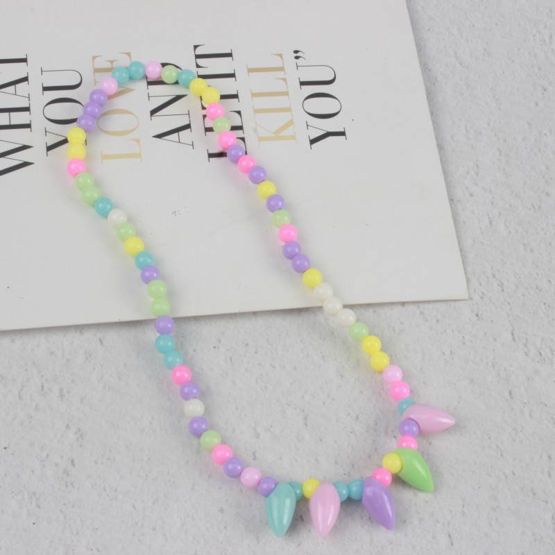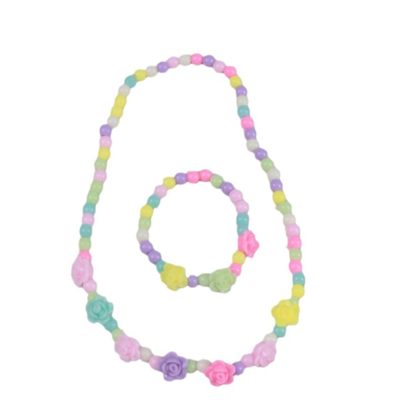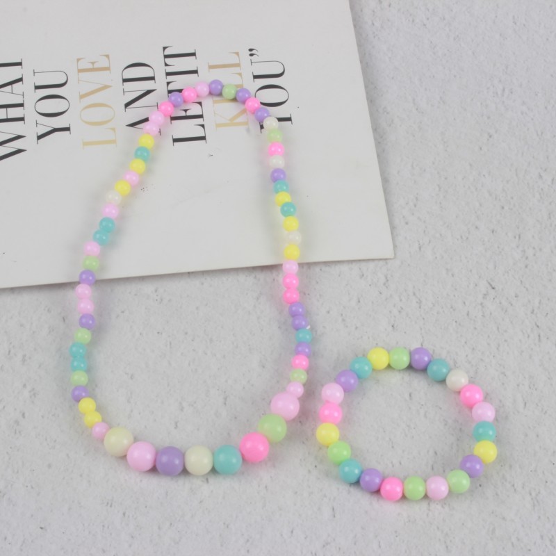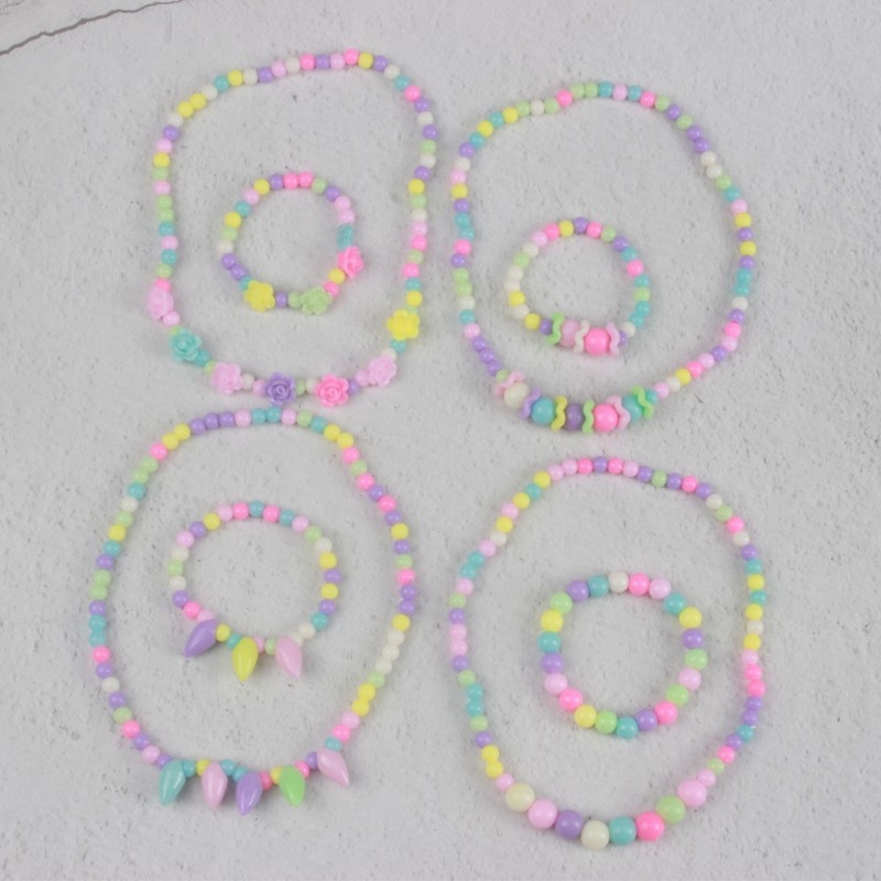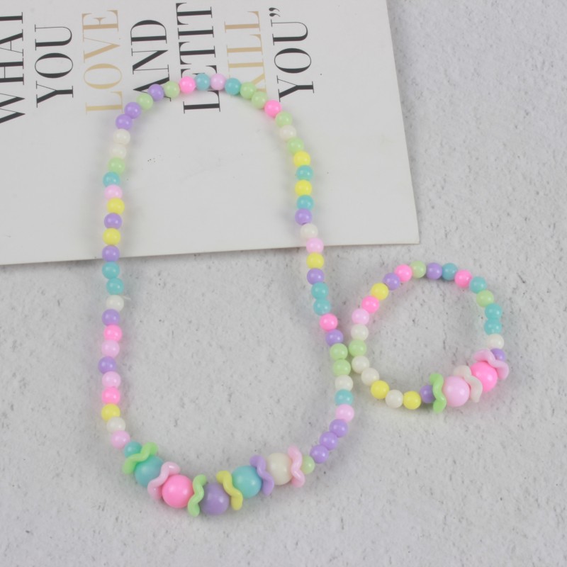 糖果色儿童项链手链彩色珠子颈链现货可爱公主亚克力花朵卡通套装