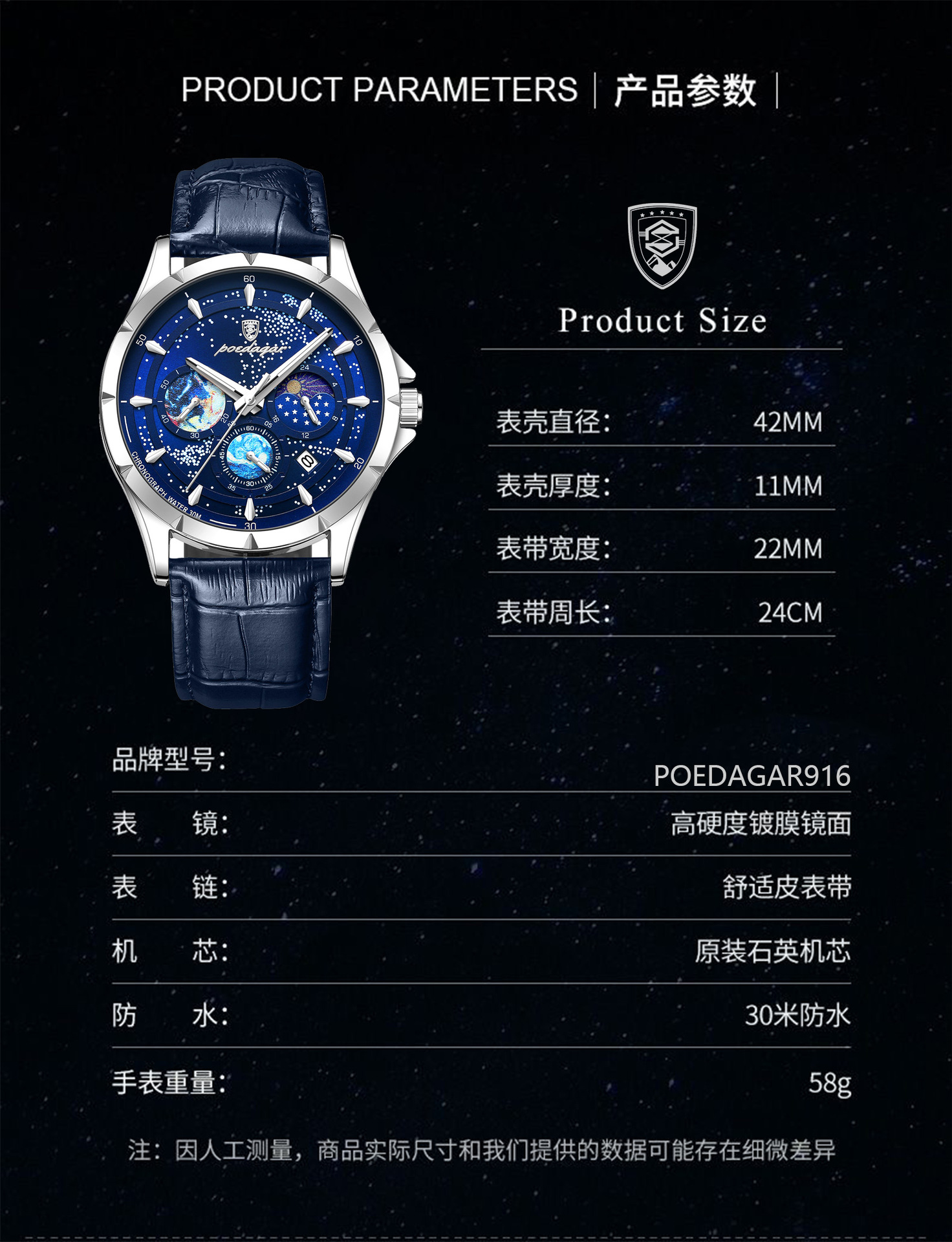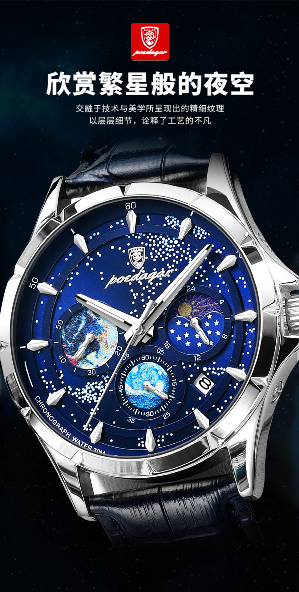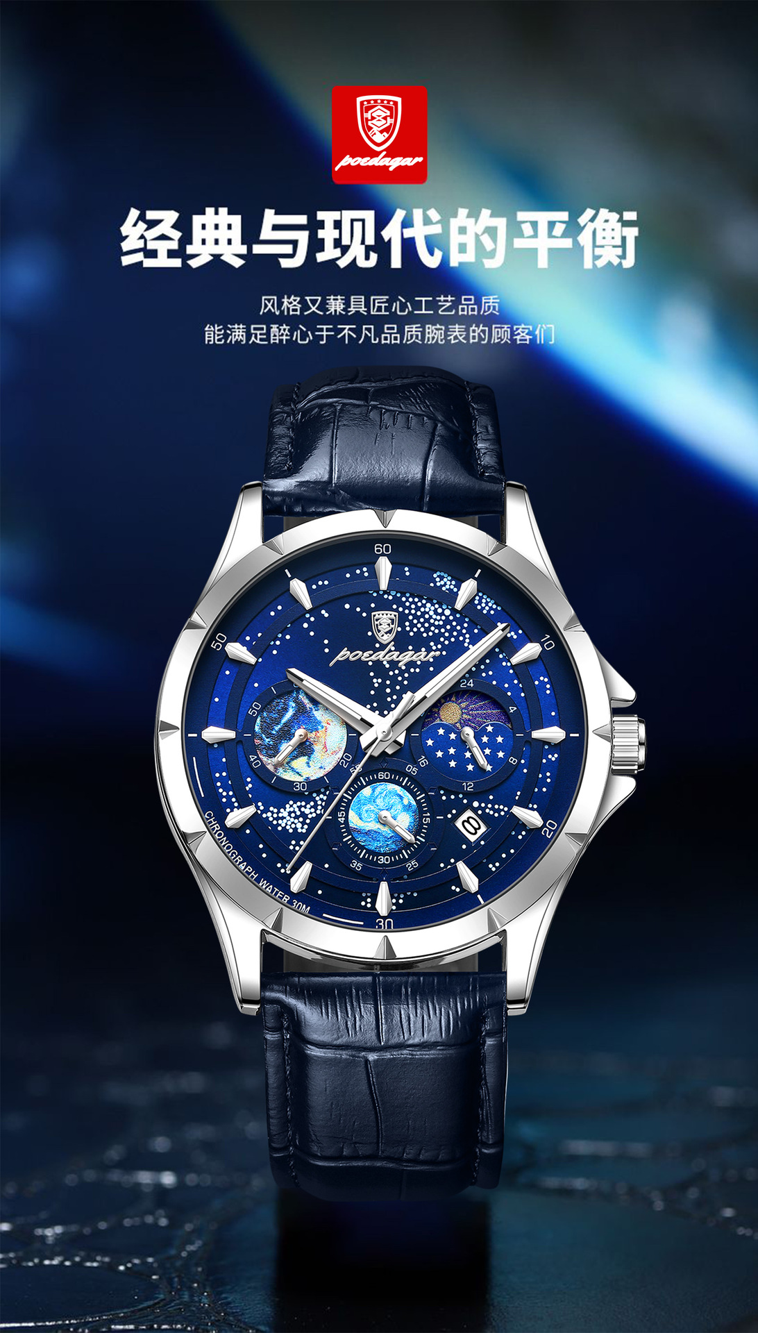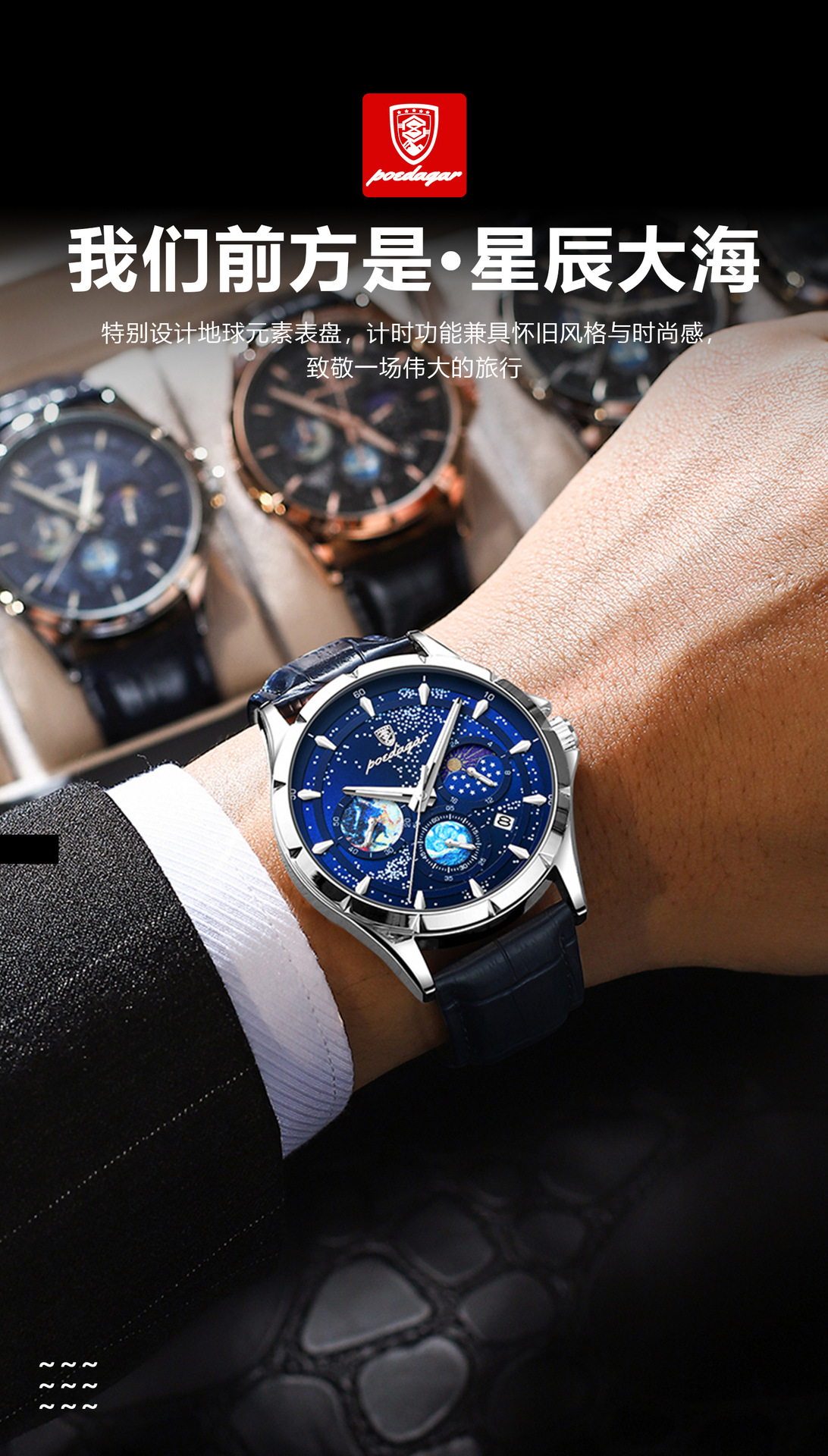 瑞士品牌新款夜光多功能男士手表防水石英表直播外贸爆款一件代发