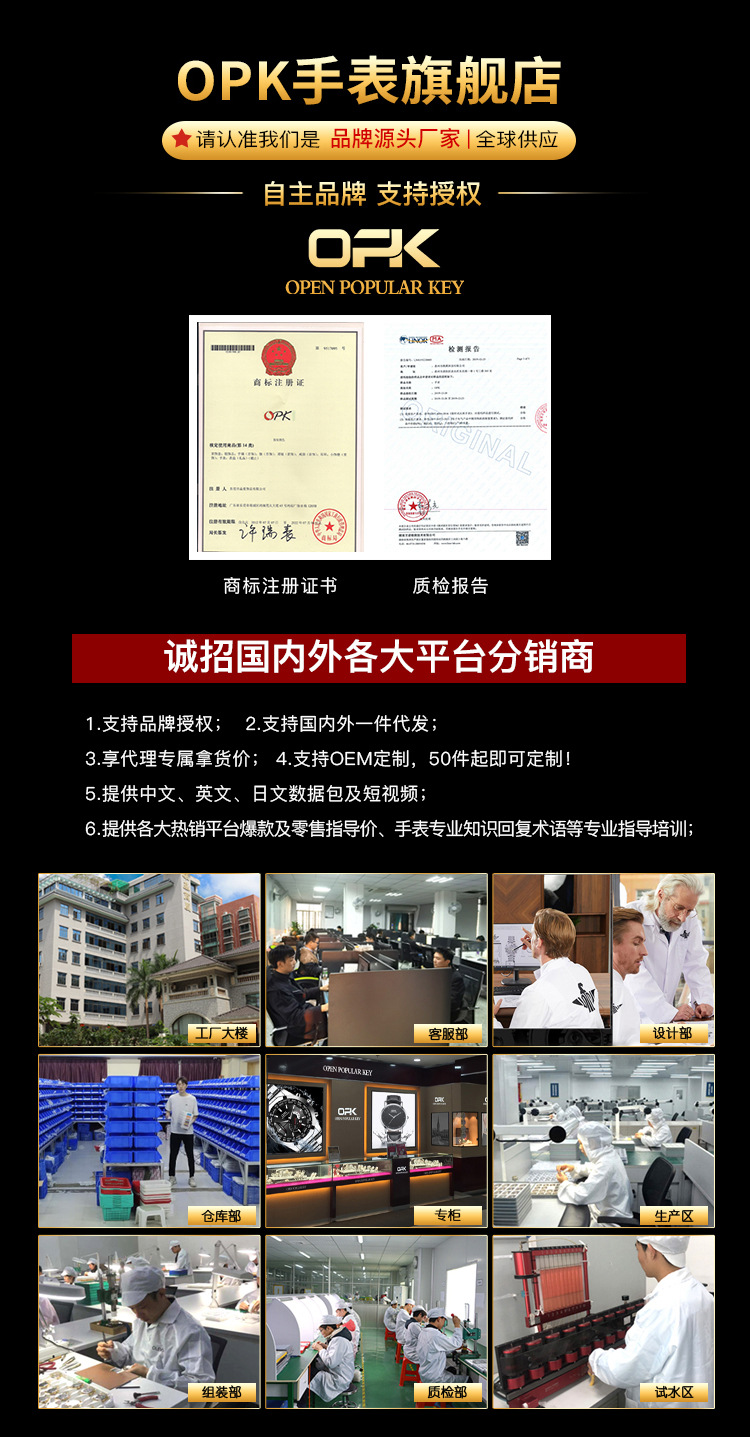 OPK品牌手表厂家抖音热销一件代发跨境夜光石英表男士手表男表