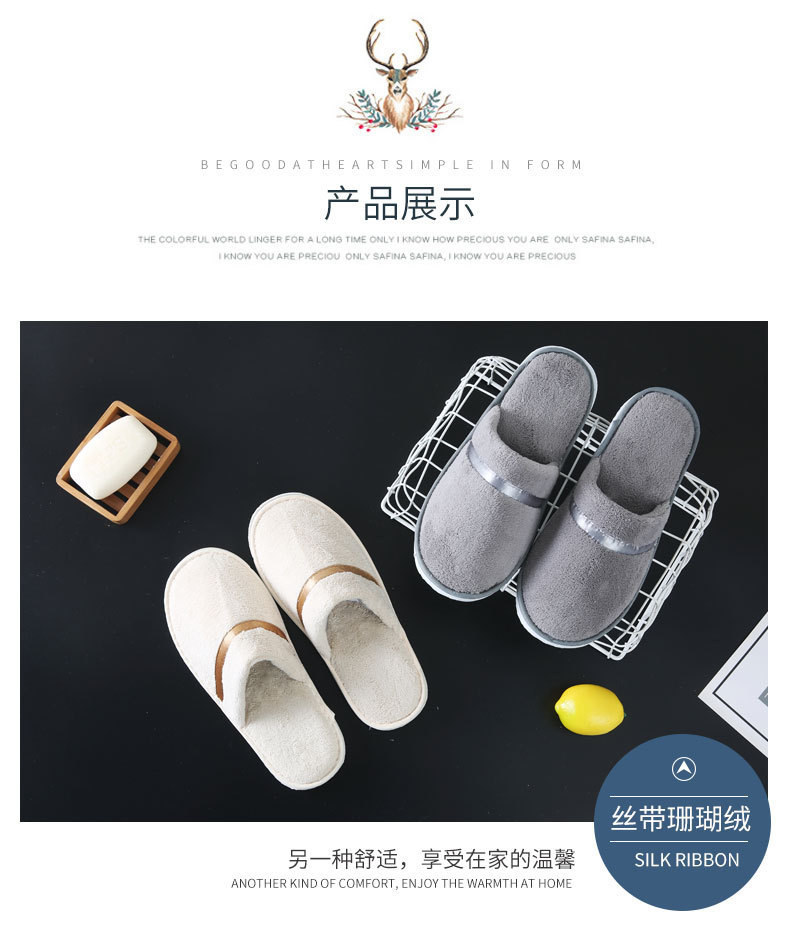 高档酒店拖鞋珊瑚绒五星级专用加厚防滑宾馆居家待客非一次性批发