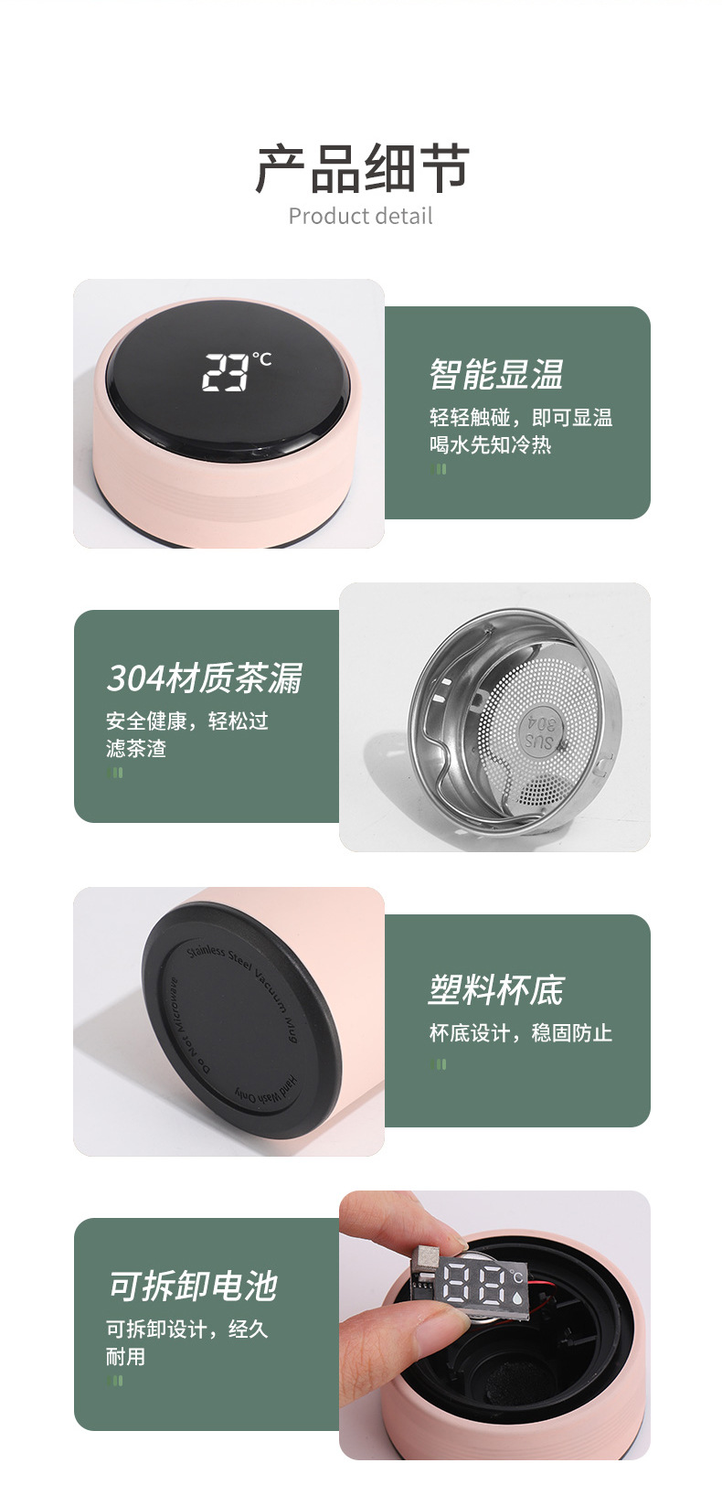 304不锈钢保温杯便携商务智能显温保温直杯刻字礼品杯子批发定制