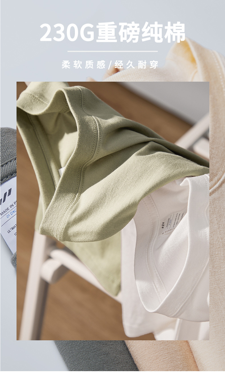 黄雀针织精梳棉230g纯棉纯色体恤服饰美式白色潮牌短袖t恤男上衣