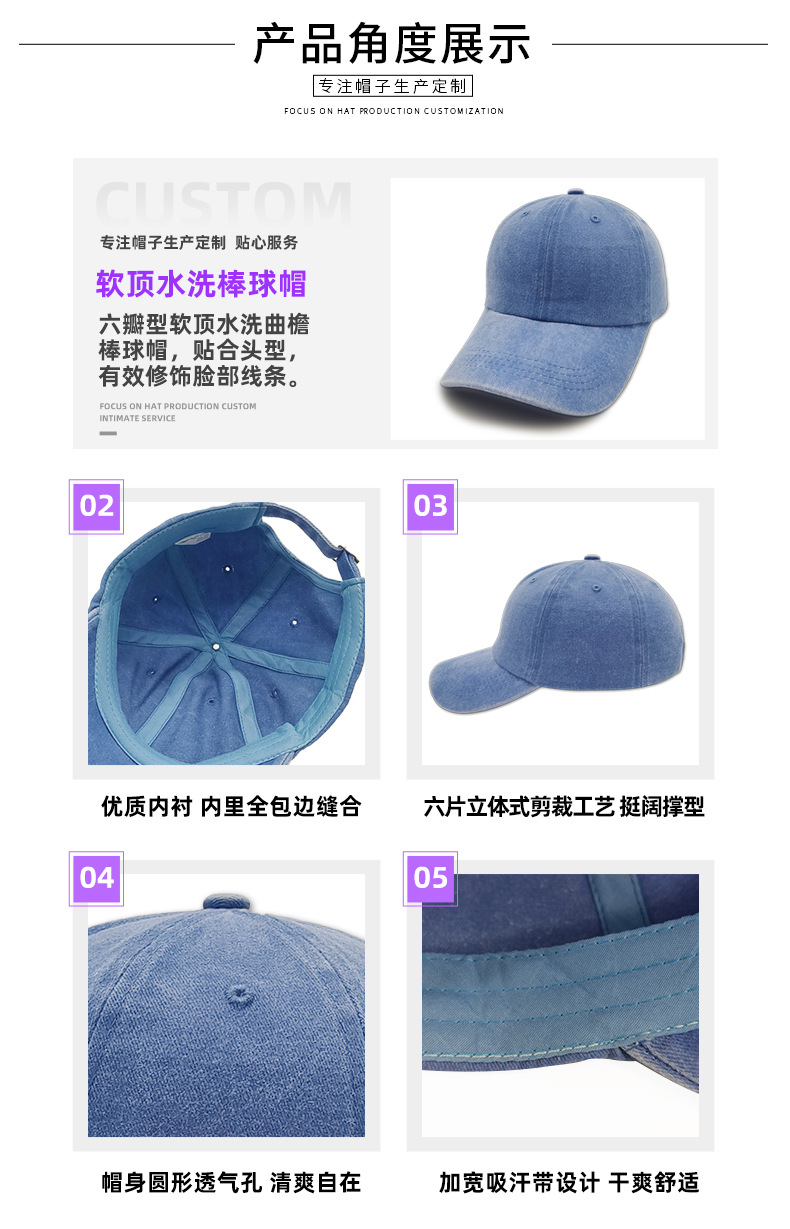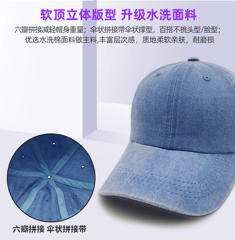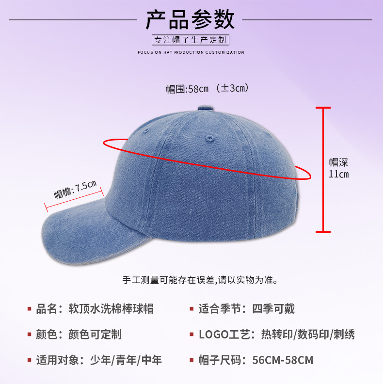跨境热销水洗棒球帽软顶遮阳鸭舌帽男复古防晒帽女印logo帽子批发
