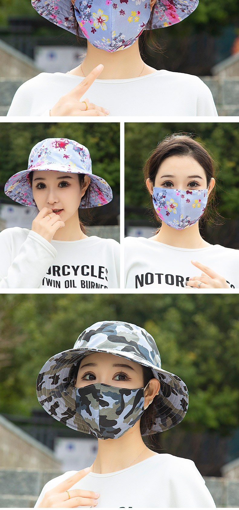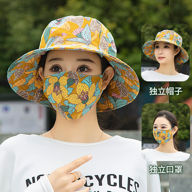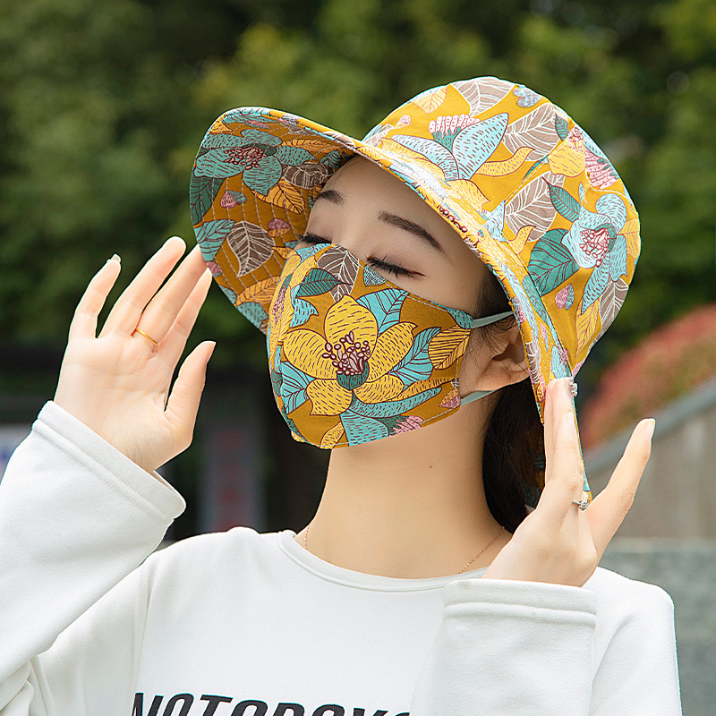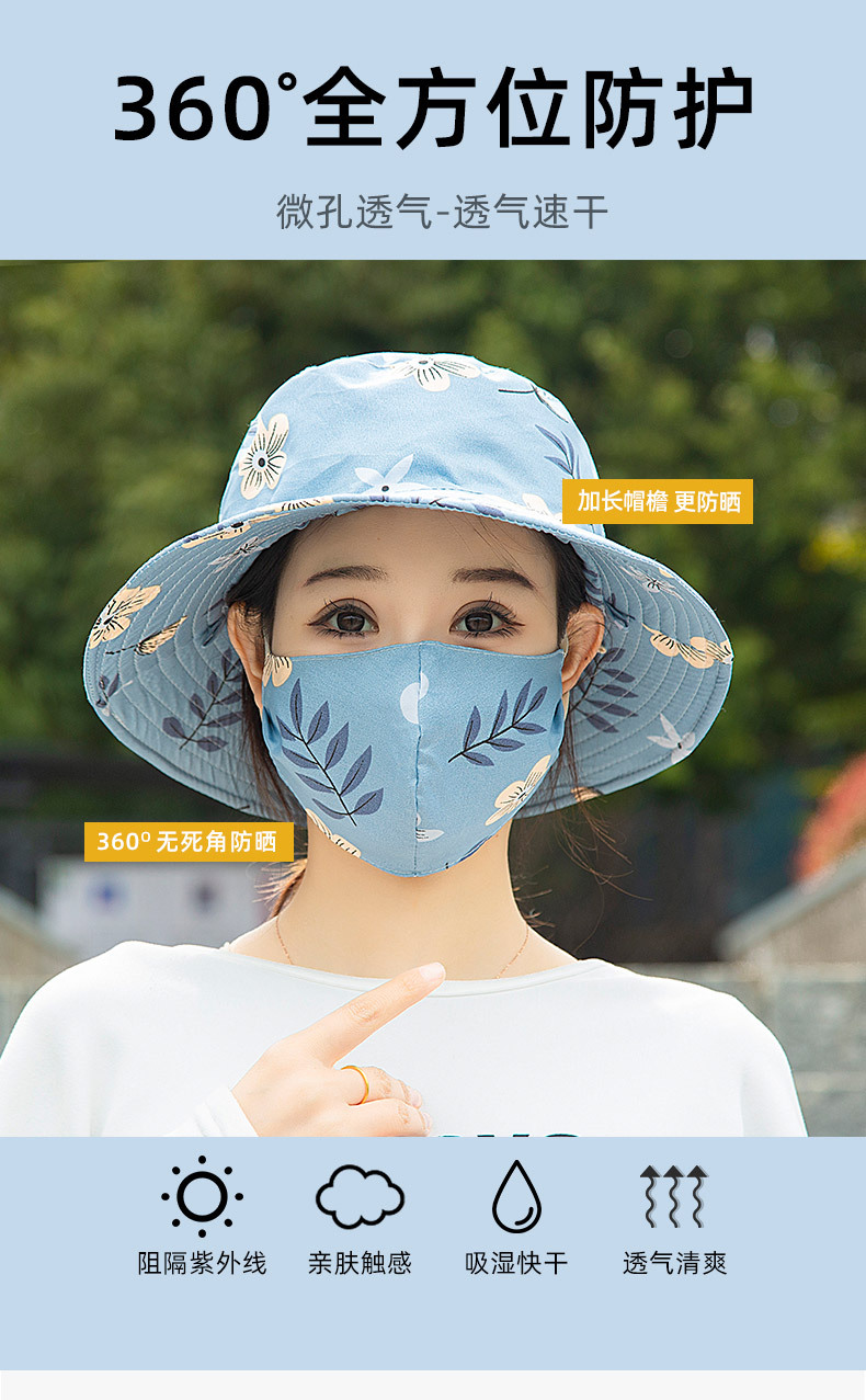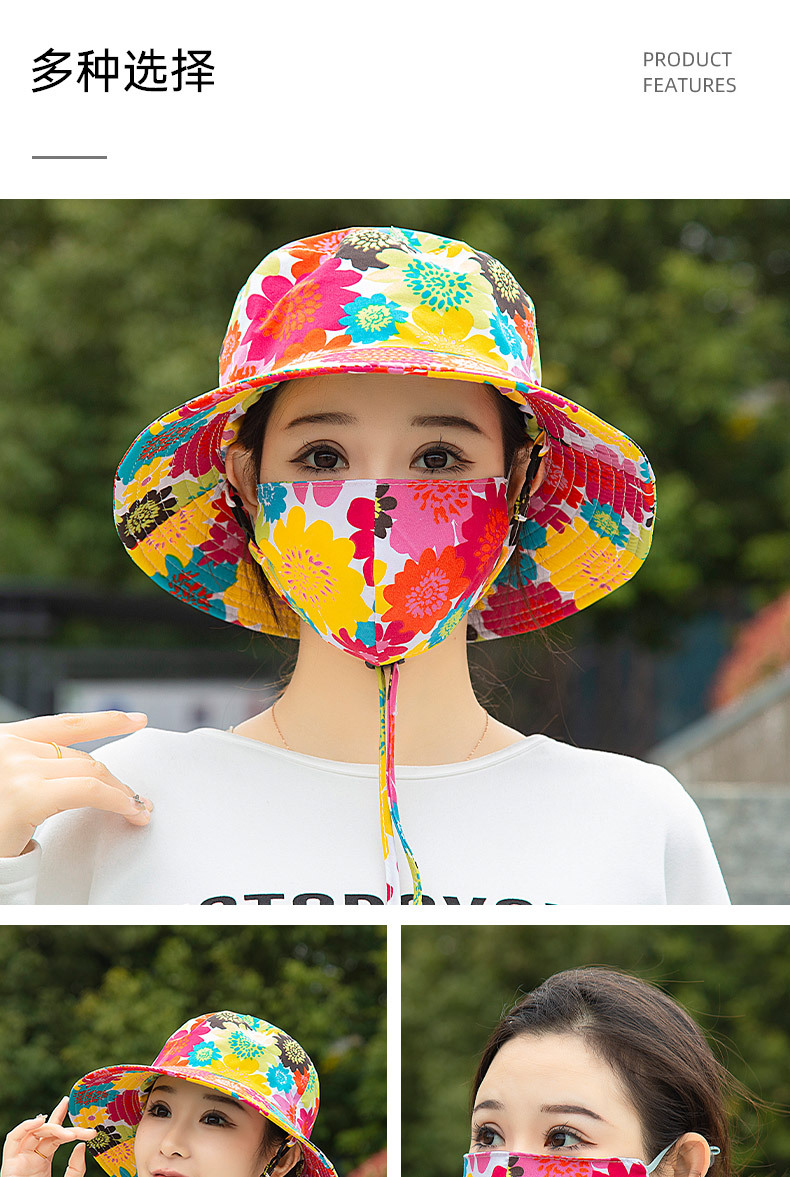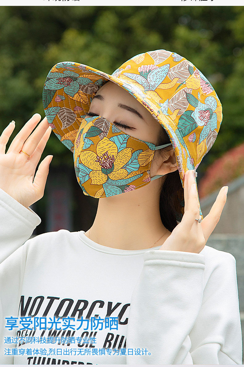 口罩帽子女春夏天遮脸防晒遮阳帽户外骑行干活采茶帽可折叠太阳帽