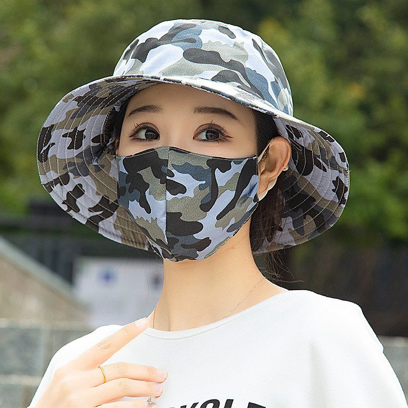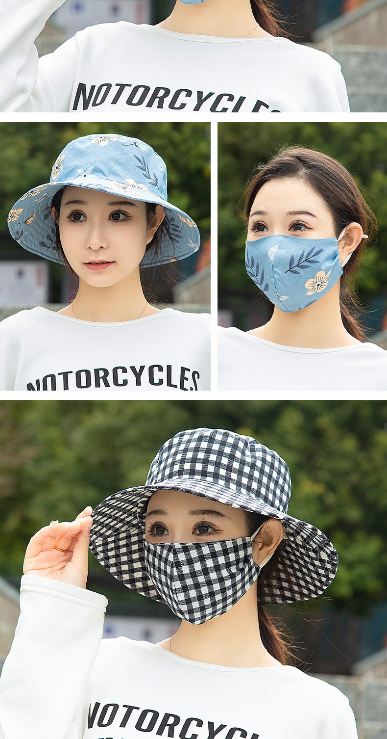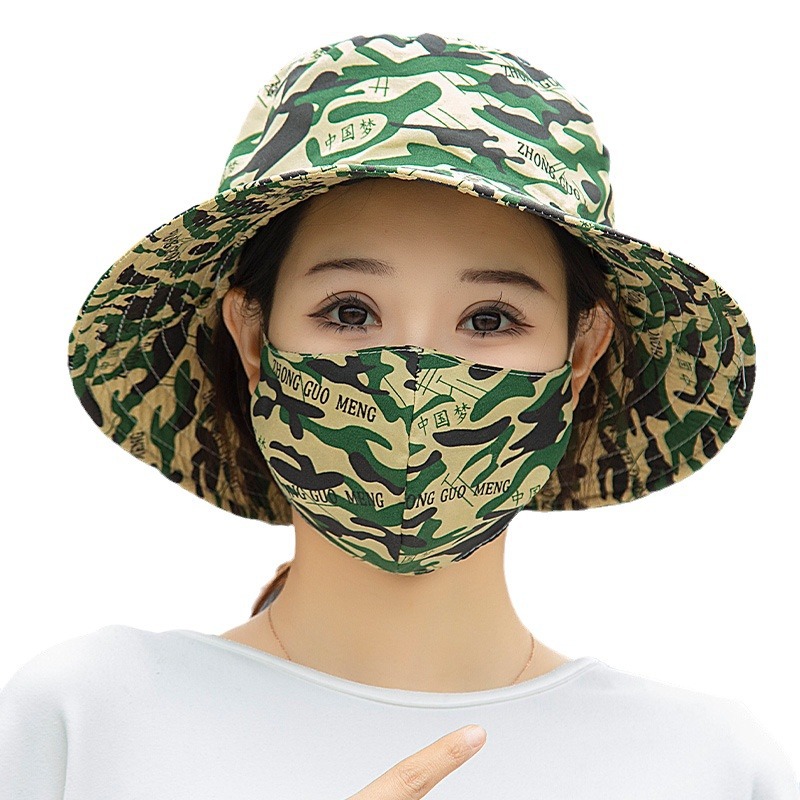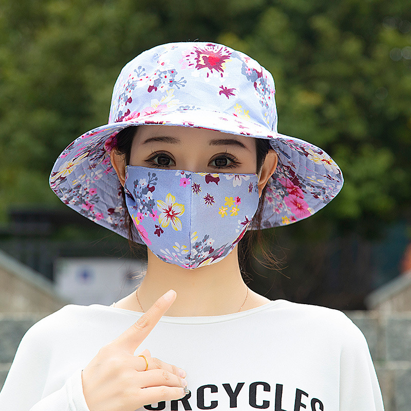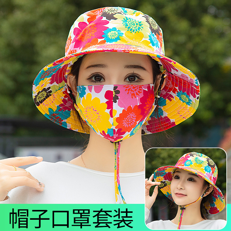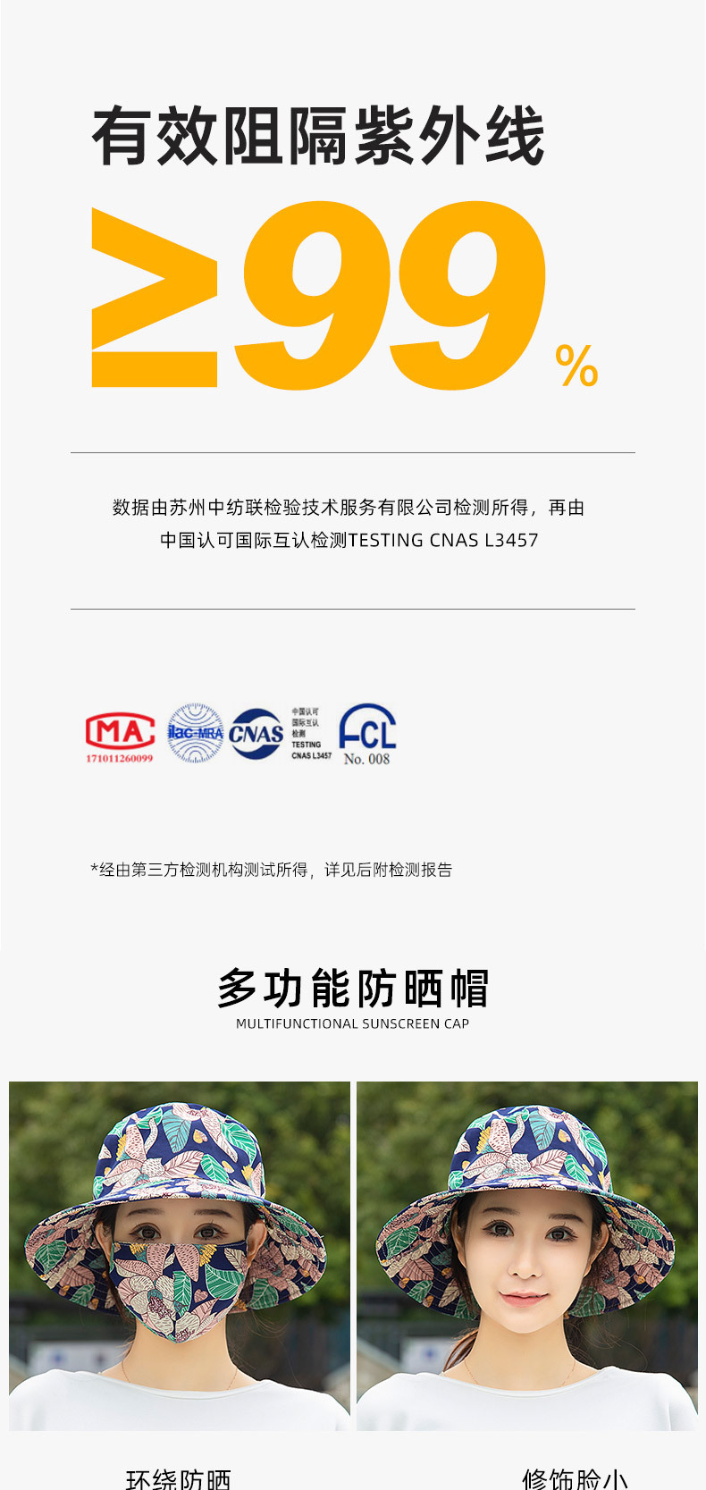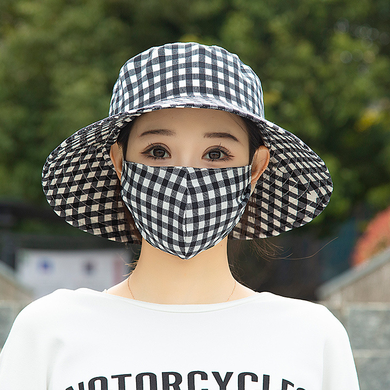 口罩帽子女春夏天遮脸防晒遮阳帽户外骑行干活采茶帽可折叠太阳帽