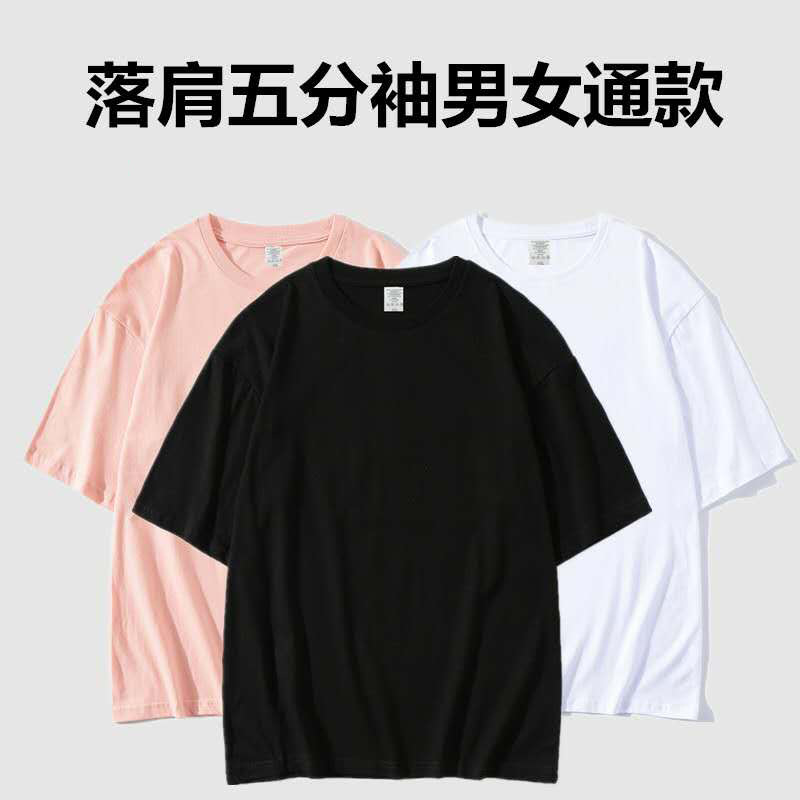 夏季精梳棉180g圆领大码五分袖宽松落肩短袖男女潮流纯棉t恤批发