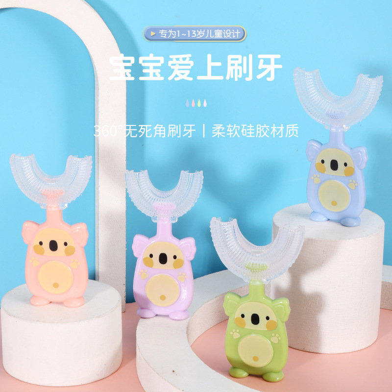 新款手动儿童U型牙刷硅胶牙刷宝宝口含式口腔清洁手动U型儿童牙刷