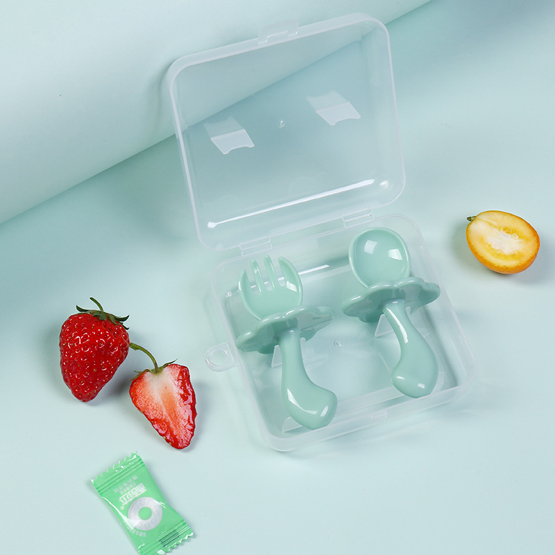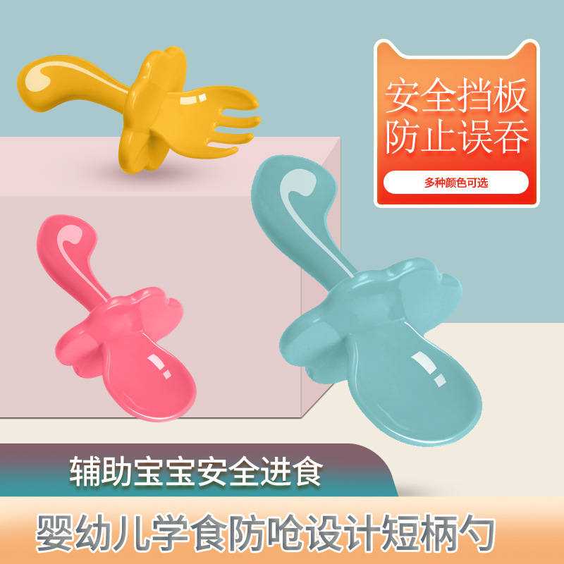 宝宝婴儿短柄云朵勺子叉子宝宝吃饭训练勺叉套装防呛勺儿童餐具