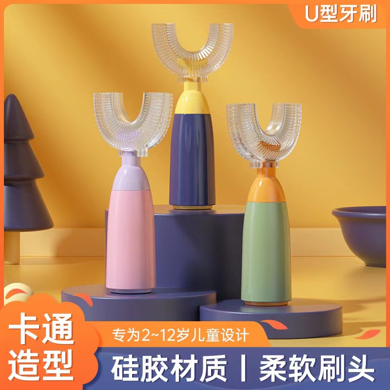 新款手动儿童u型牙刷硅胶牙刷软毛口含式清洁u形硅胶手动儿童牙刷