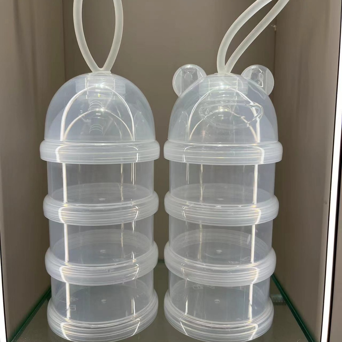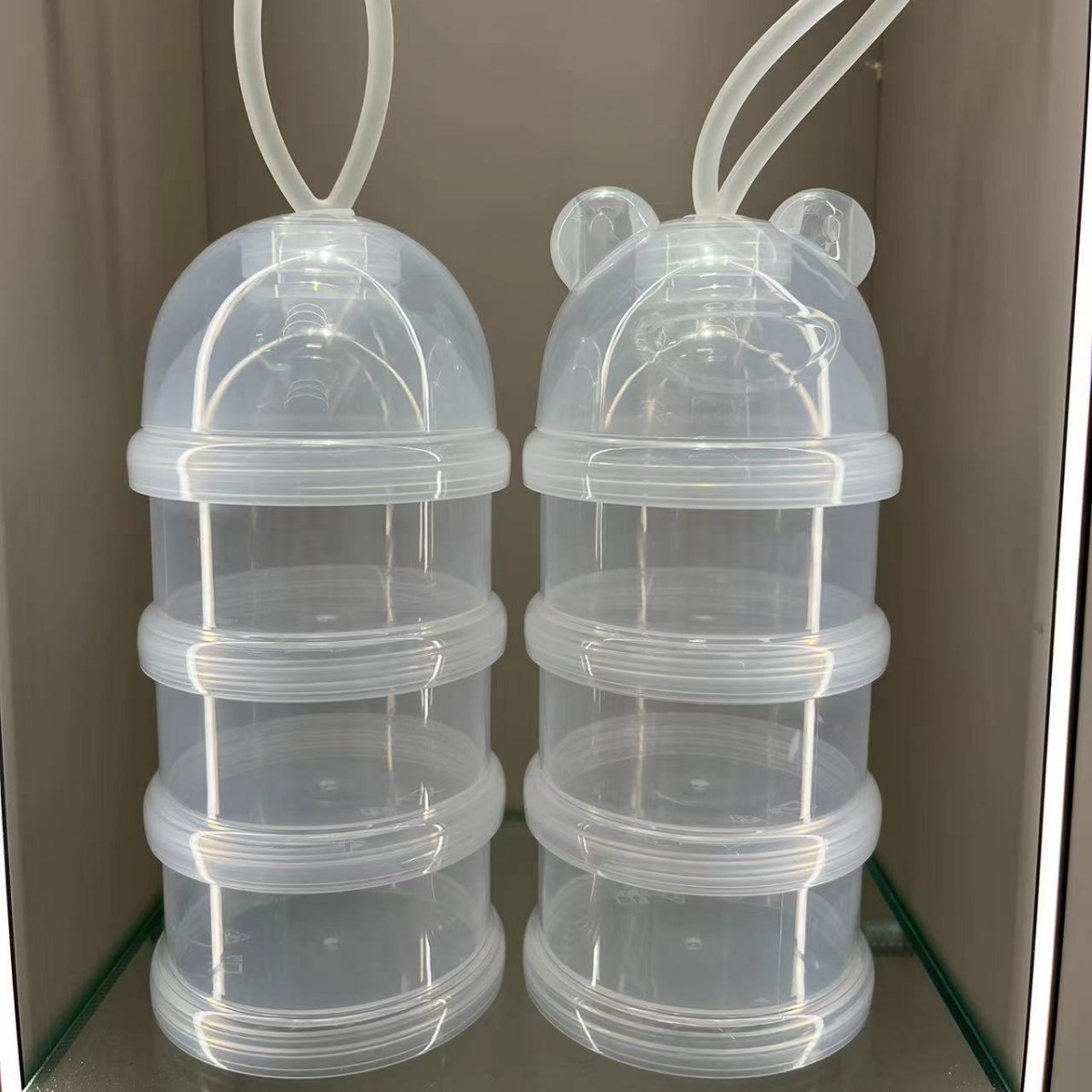 透明色婴儿三层四层奶粉盒 独立分层奶粉格 儿童便携式旋转奶粉盒