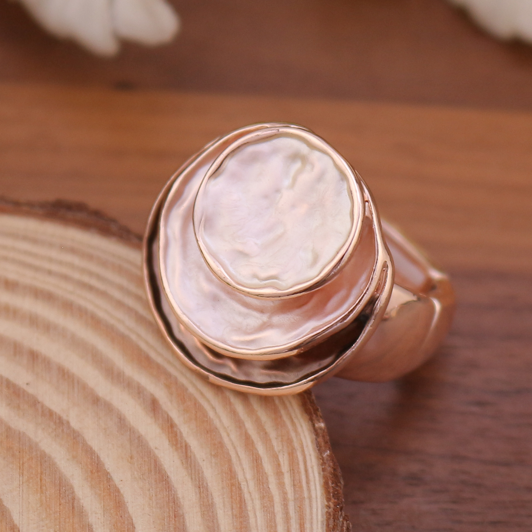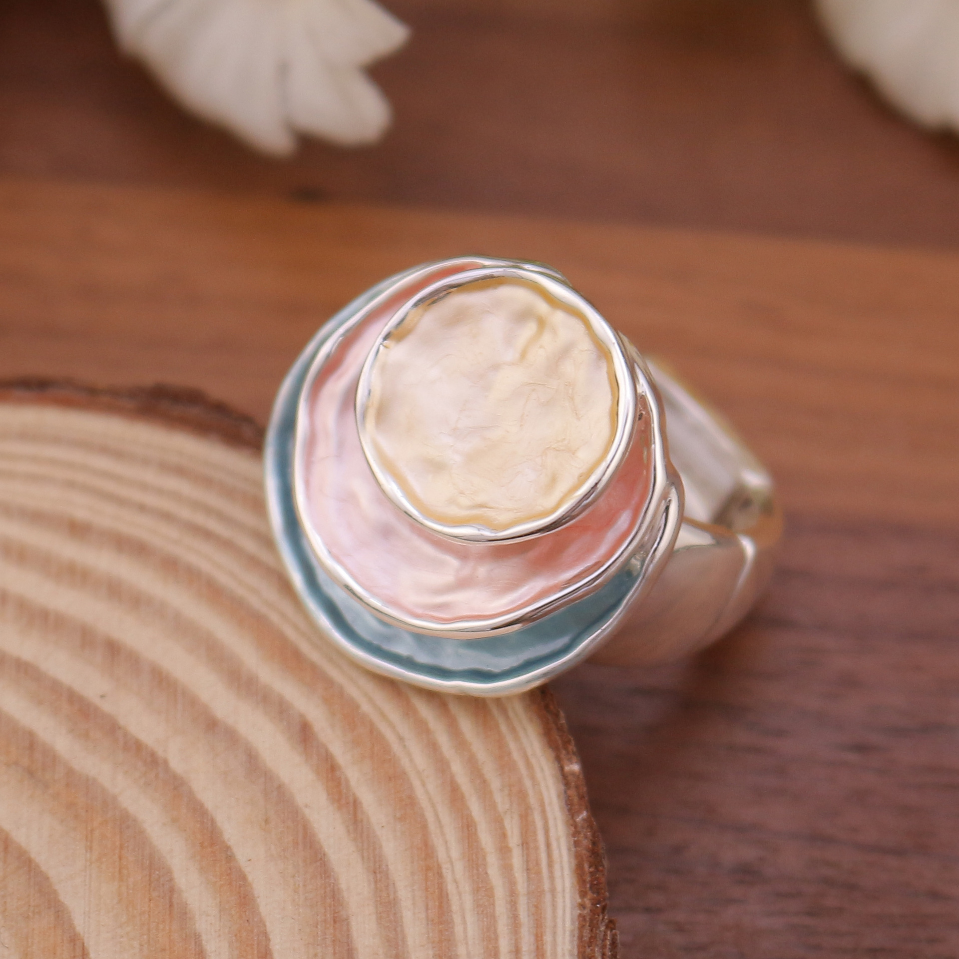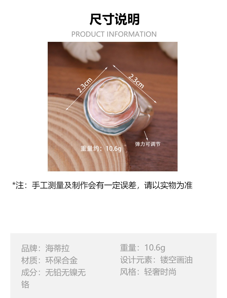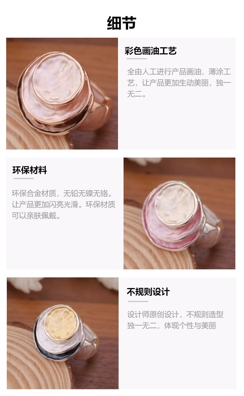 跨境爆款彩色画油三层圆饼弹力戒指 女士百搭三层圆形镂空戒指