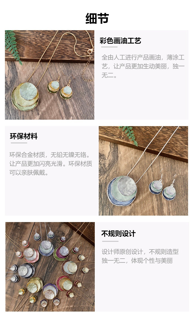 跨境爆款彩色画油三层圆环镂空吊坠耳环套装波西米亚女士饰品套装