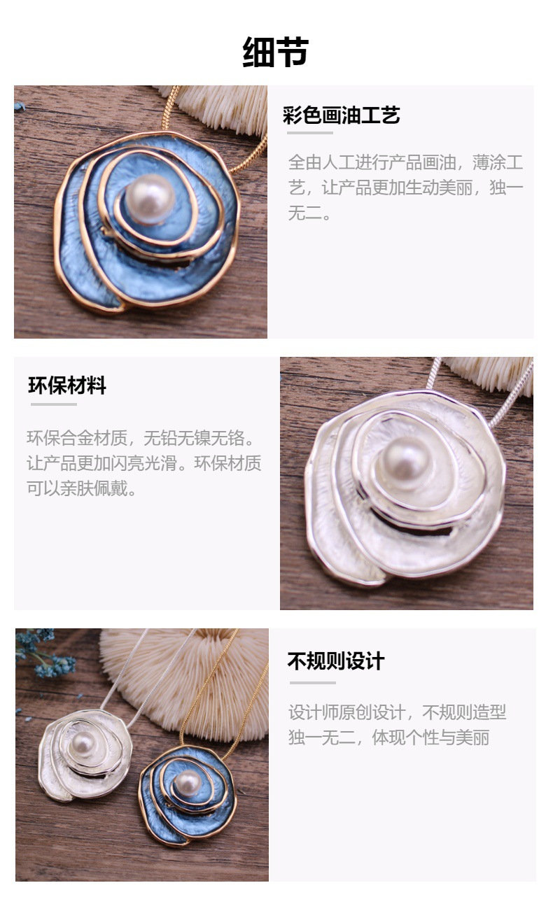 跨境新款彩色画油几何多层玫瑰花吊坠 时尚高级感玫瑰花女士颈链