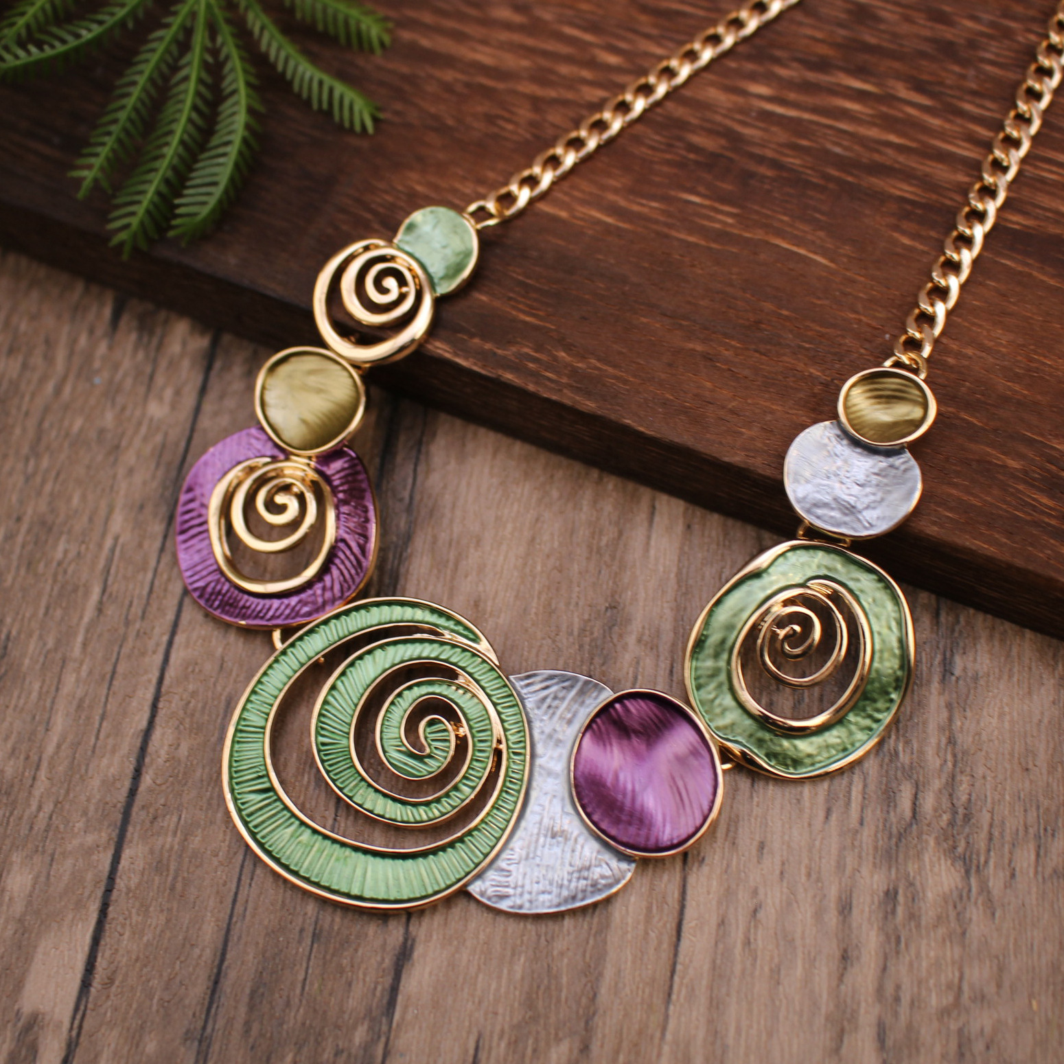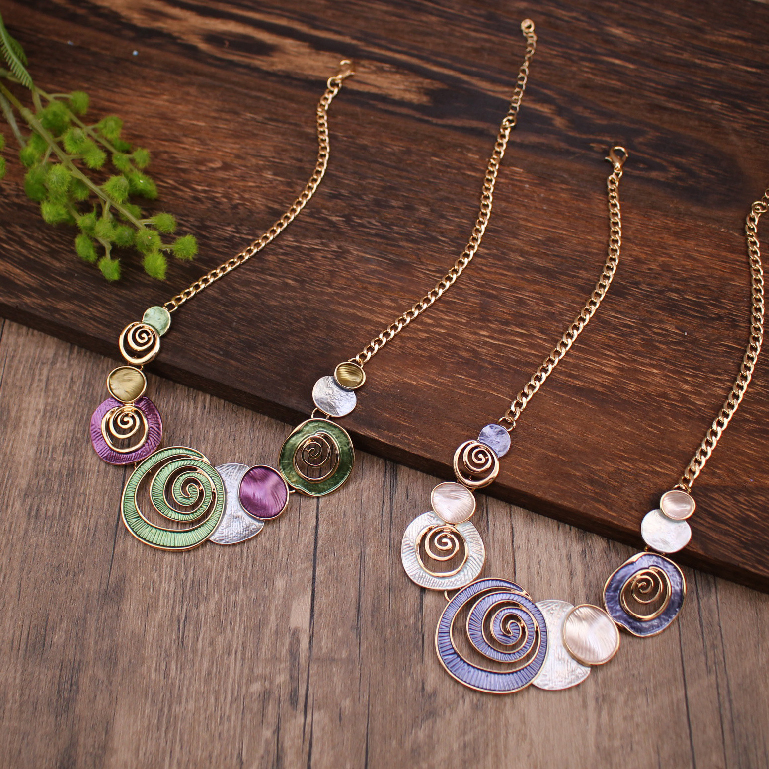 跨境新款彩色画油镂空海螺项链 时尚百搭女士高级感海螺颈链批发