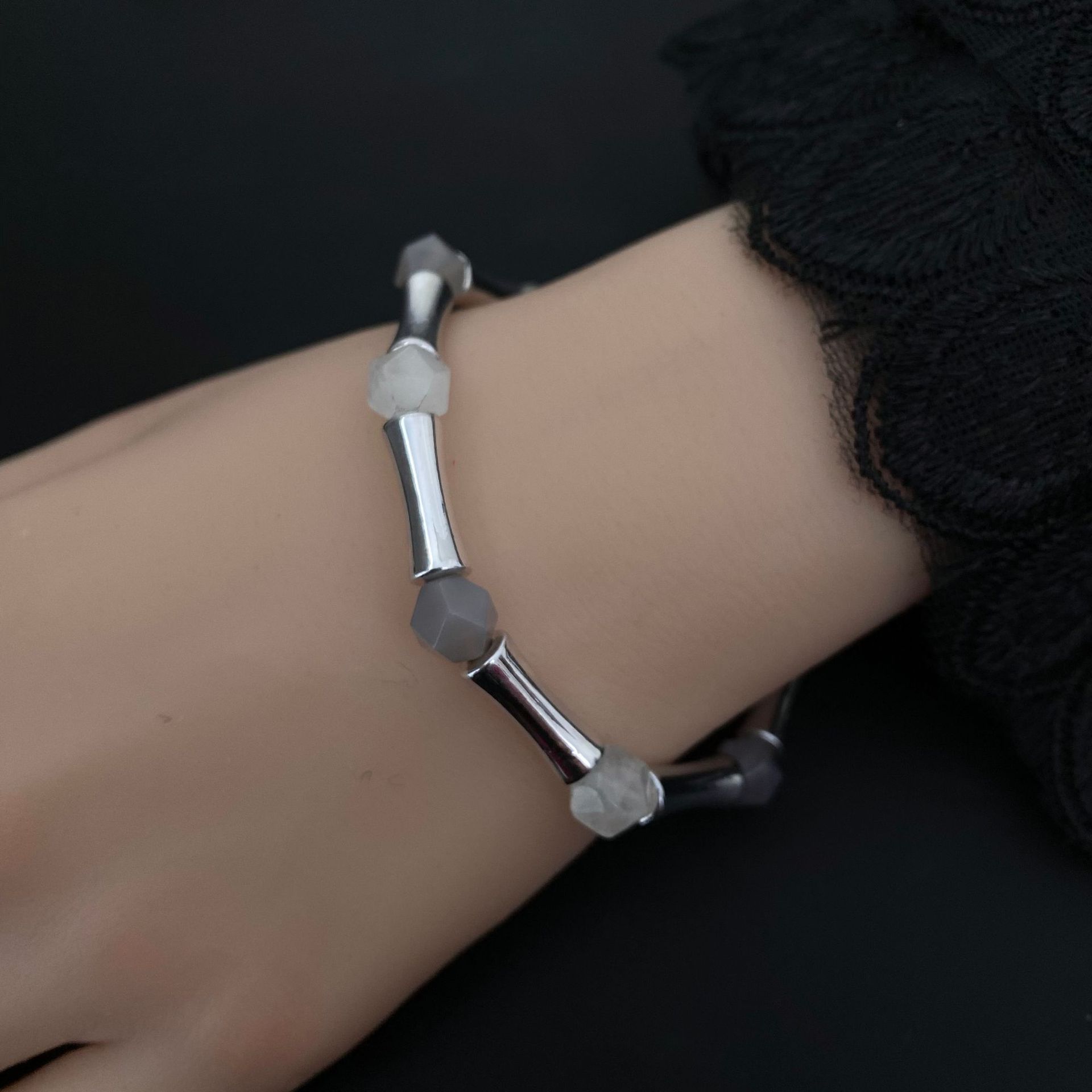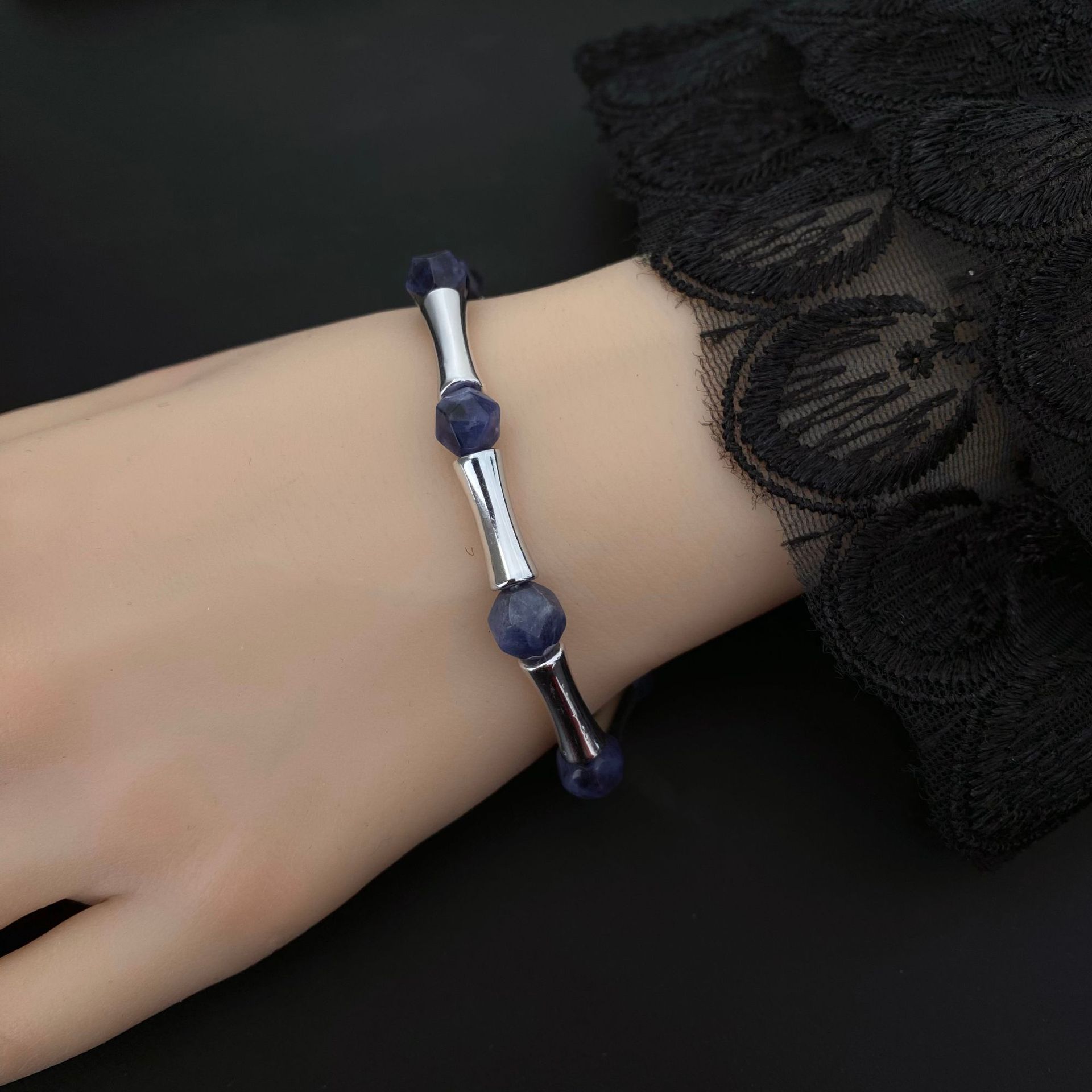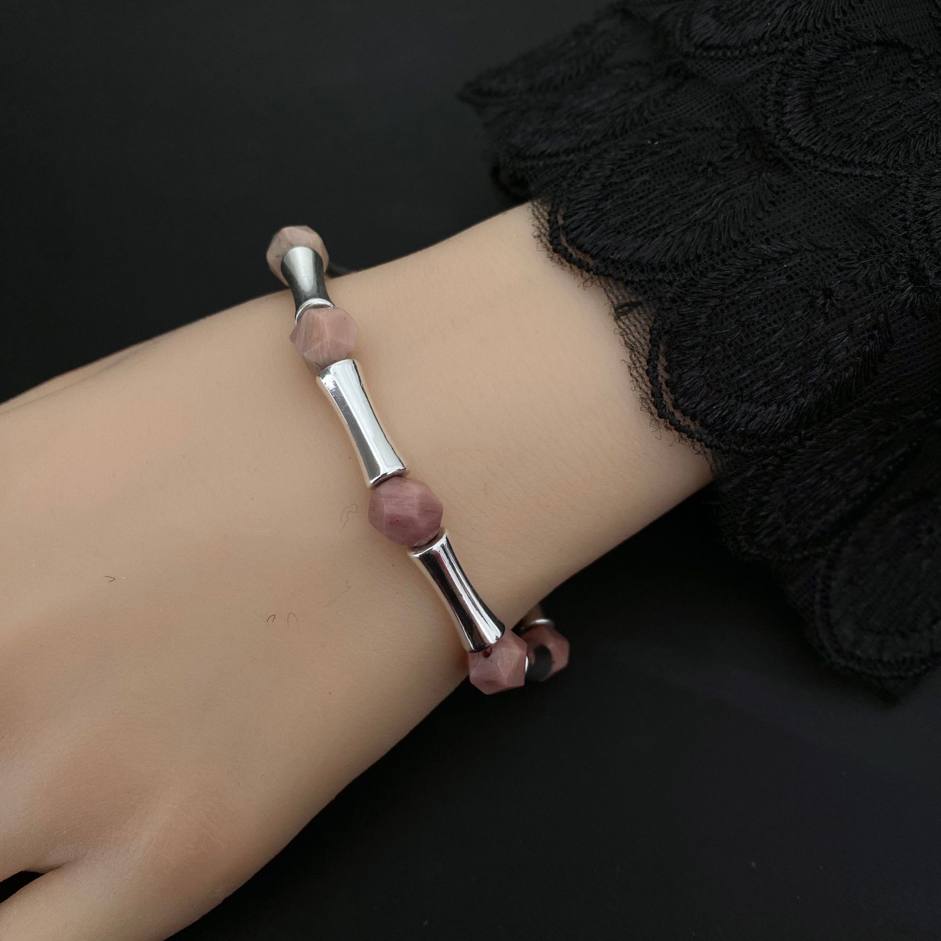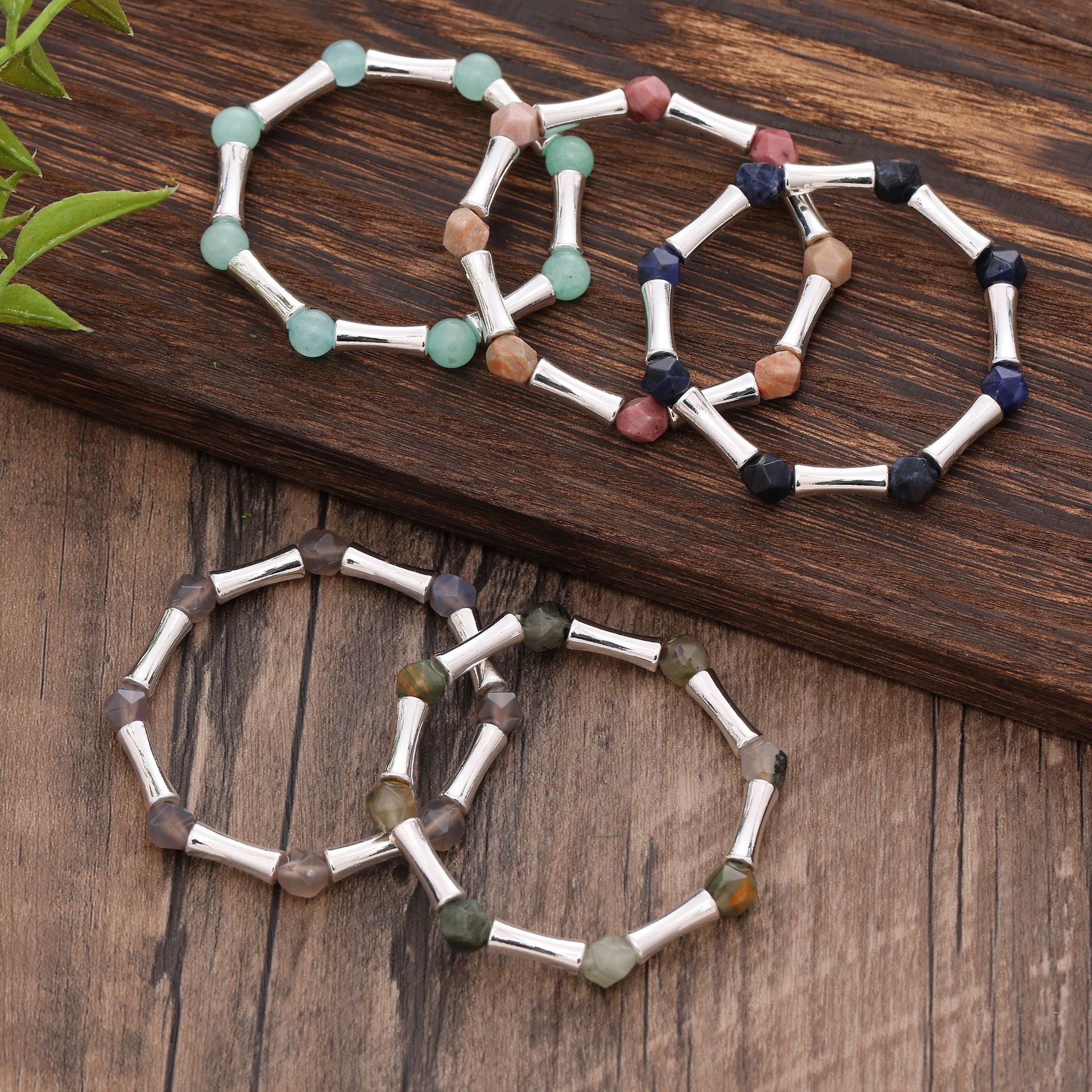 跨境爆款天然水晶切面串珠竹节弹力手链 高级感男女百搭水晶手饰