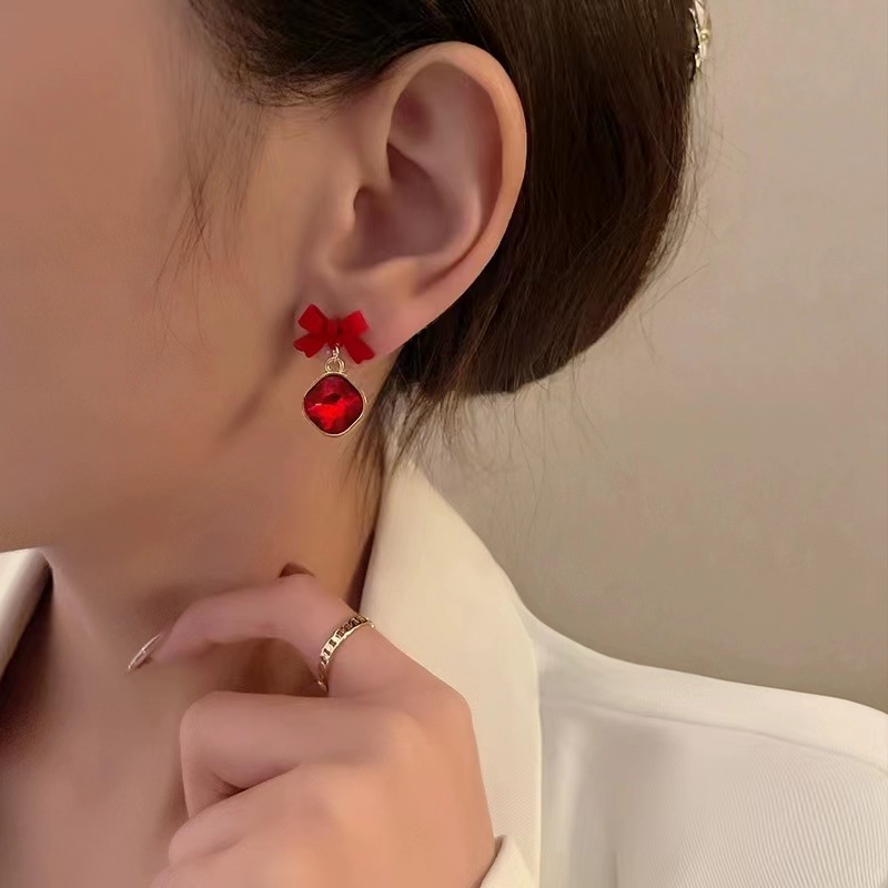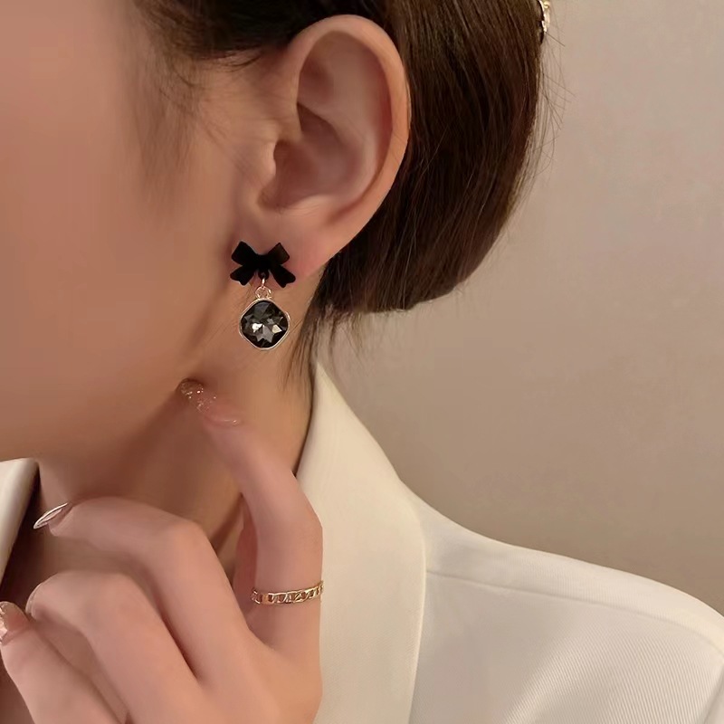 超闪水晶蝴蝶结耳钉小众设计感轻奢耳环s925银针温柔新款爆款耳饰