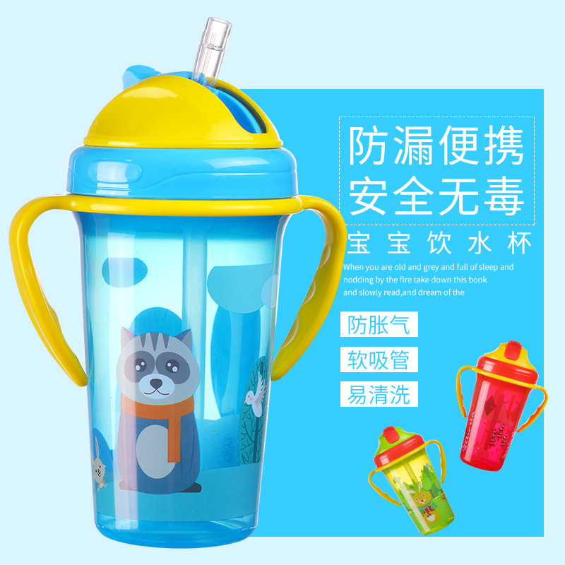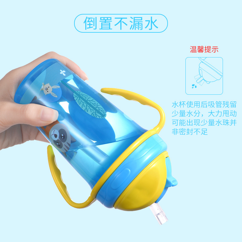 厂家直销大容量防滴漏水杯 带盖带手柄隔热防烫防摔儿童学饮杯
