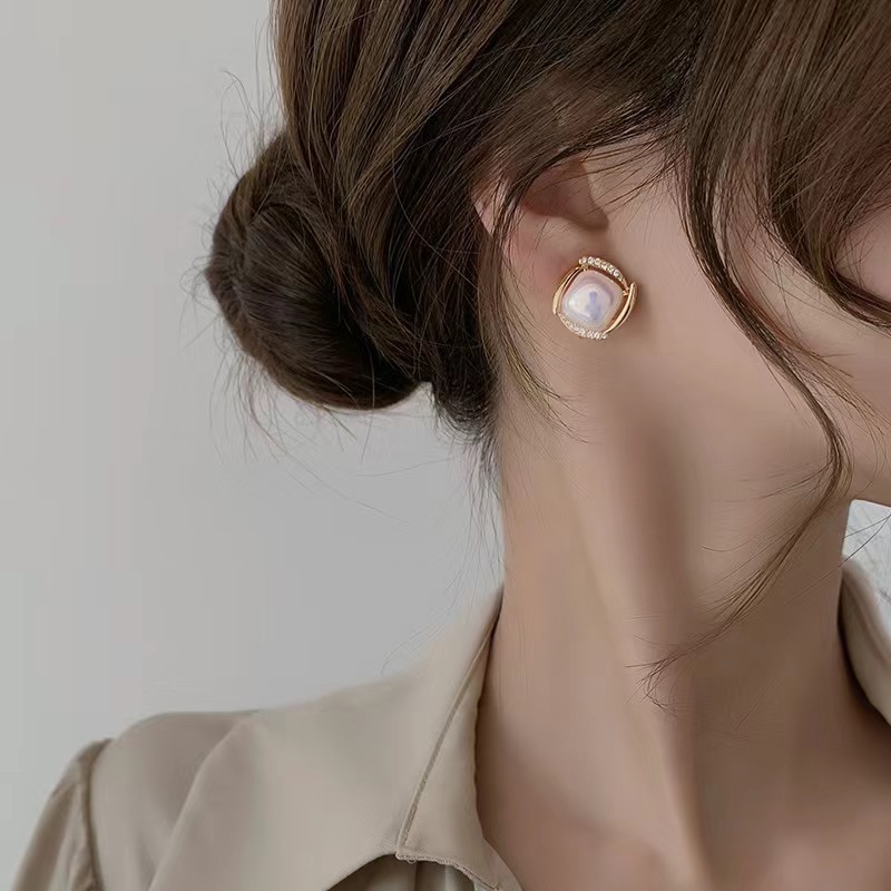 韩版新款菱形仿马杯珍珠耳夹潮高级感轻奢耳环时尚气质百搭耳饰女