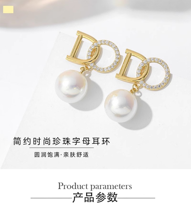 法式镶钻DO字母珍珠耳环女ins潮气质 S925银针韩版时尚小香风耳钉