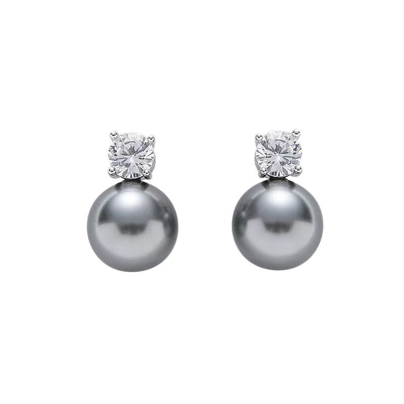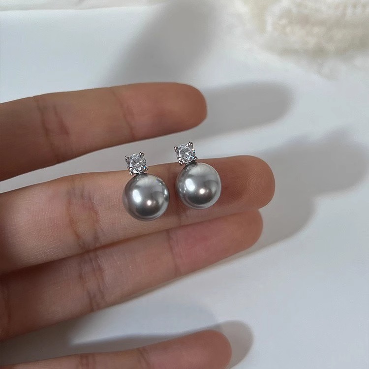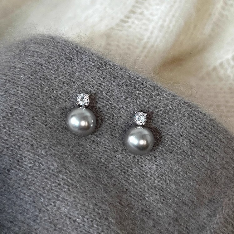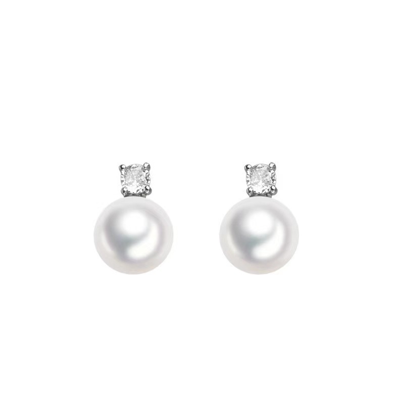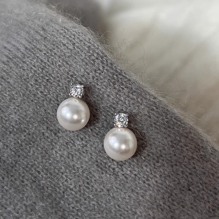 戴妃款简约珍珠耳钉高级感 微镶锆石925银针时尚百搭气质耳饰耳环