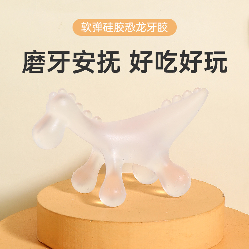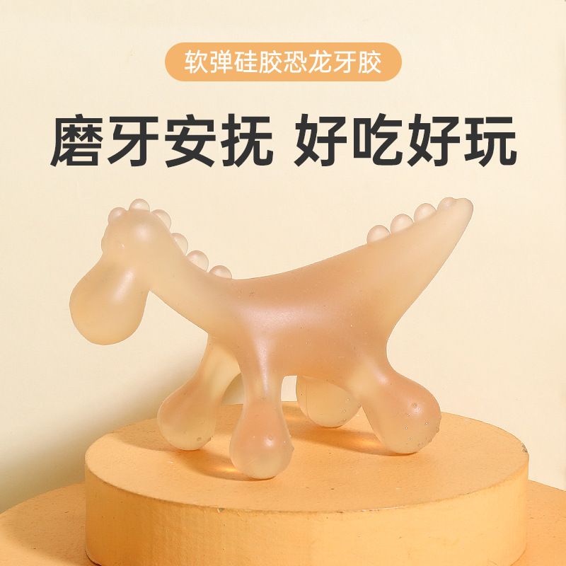 源头工厂婴幼儿恐龙牙胶咬咬乐可水煮食品级硅胶防吃手宝宝磨牙棒