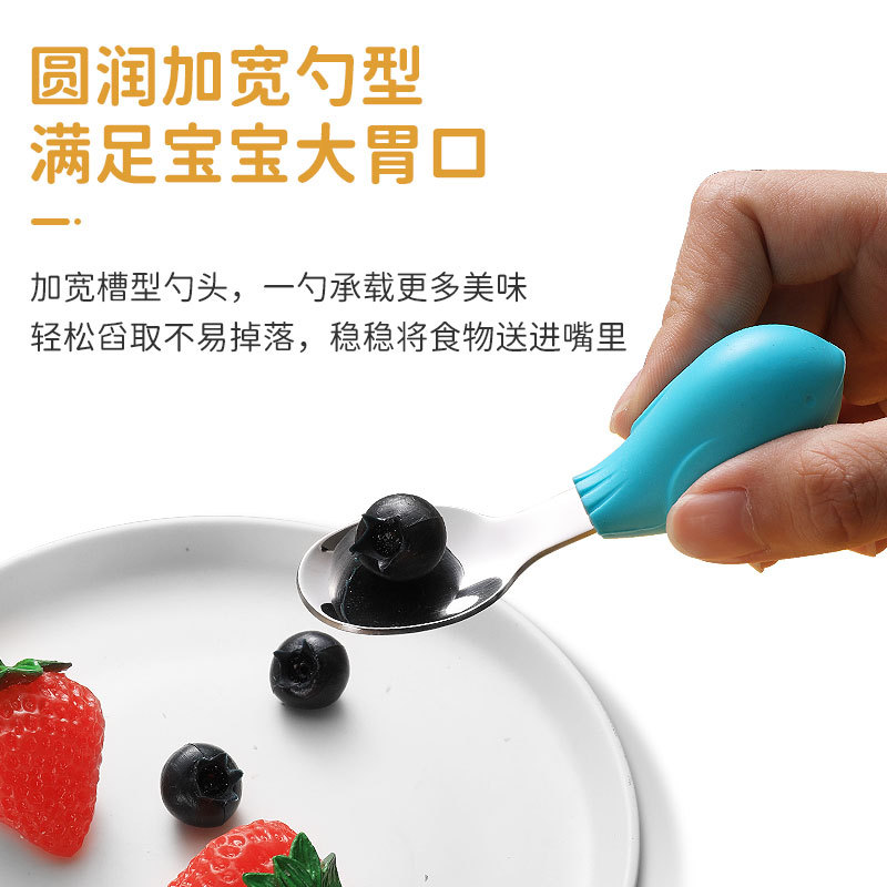 清仓处理婴儿硅胶手柄叉勺304不锈钢勺宝宝训练短柄叉勺儿童餐具