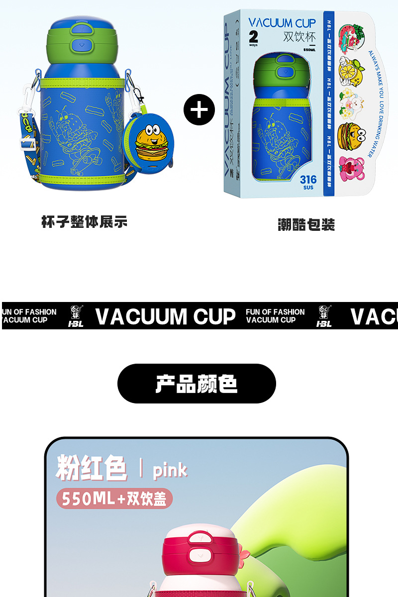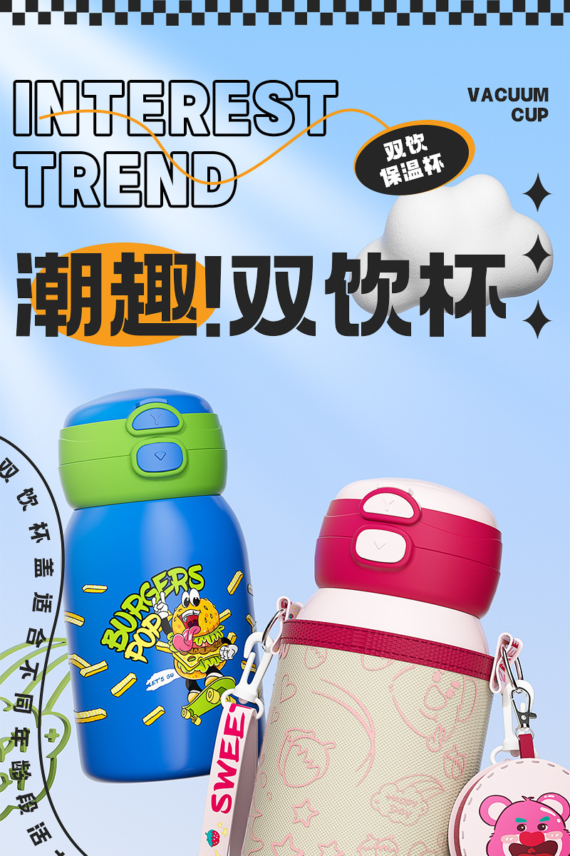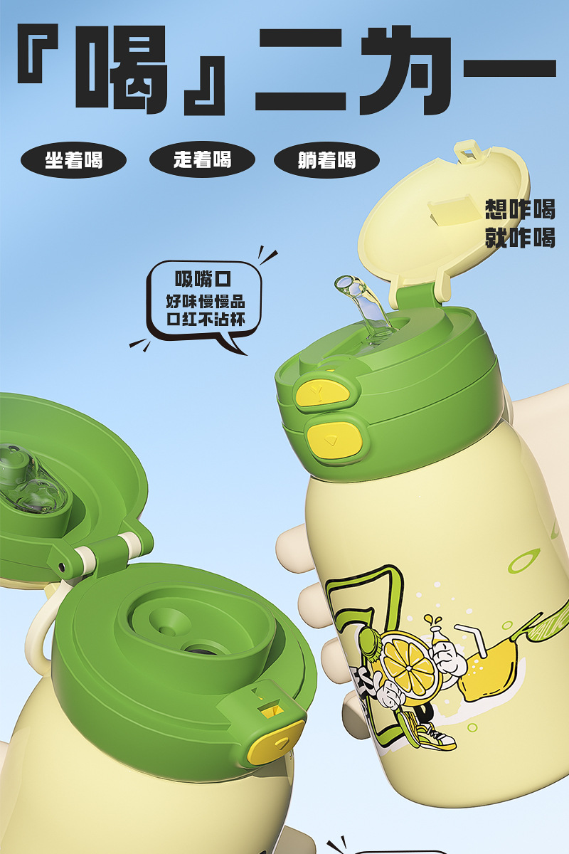316卡通双饮不锈钢保温杯高颜值可爱带吸管双饮大容量水杯批发