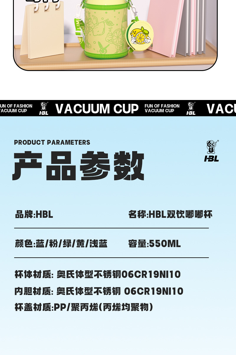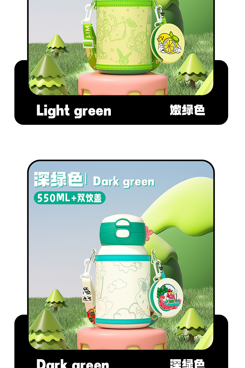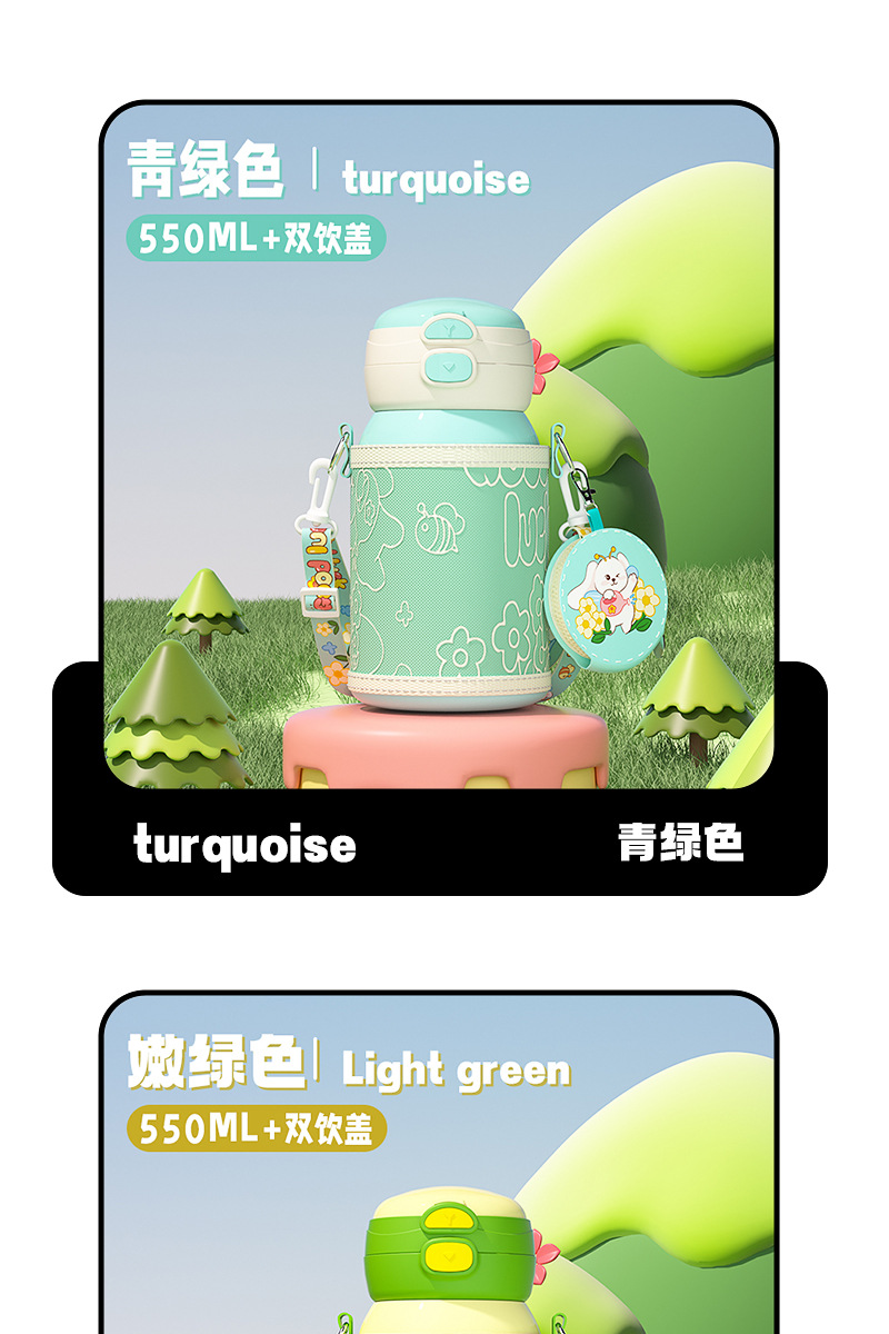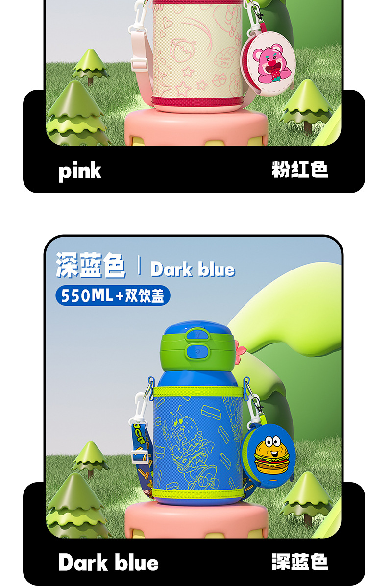 316卡通双饮不锈钢保温杯高颜值可爱带吸管双饮大容量水杯批发